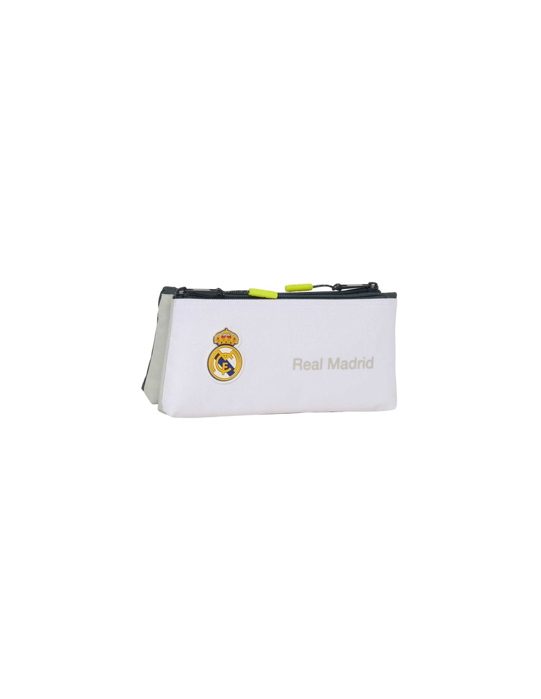 Safta Real Madrid Portatodo de 2L - 2 Compartimentos - Cierre de Cremallera - 22x10x8cm - Color Blanco y Negro