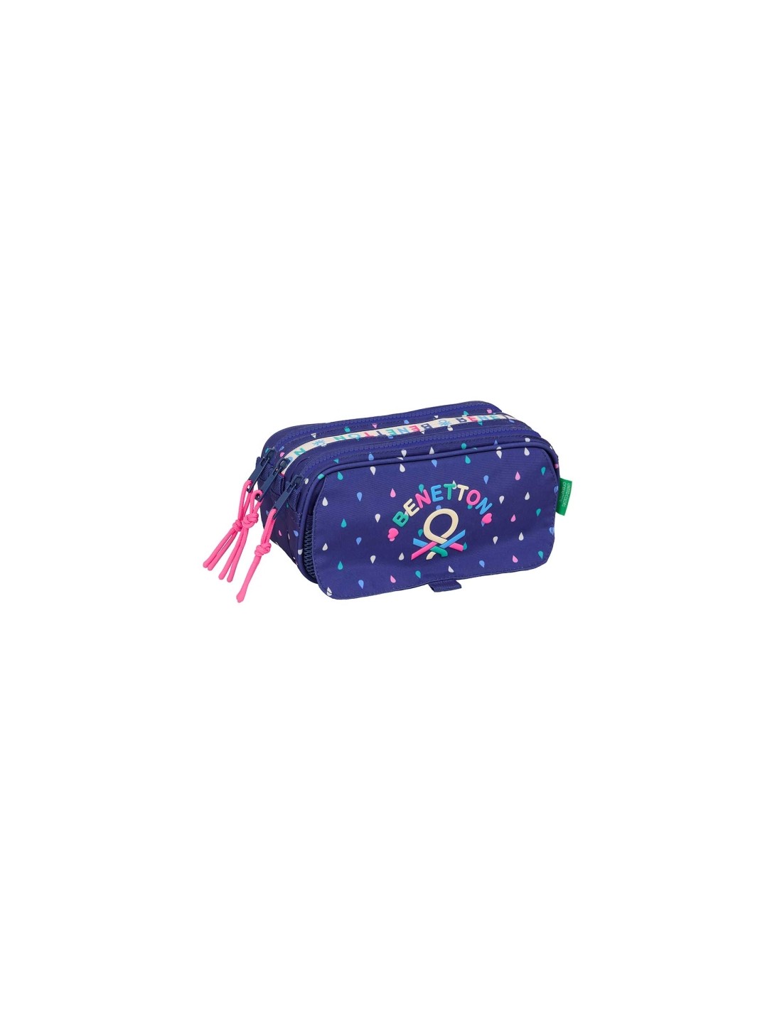 Safta Benetton Drop Portatodo - 3 Compartimentos con Cremalleras - Bolsillo Frontal - Cinta Adaptable - 1.72L - 215x80x100mm