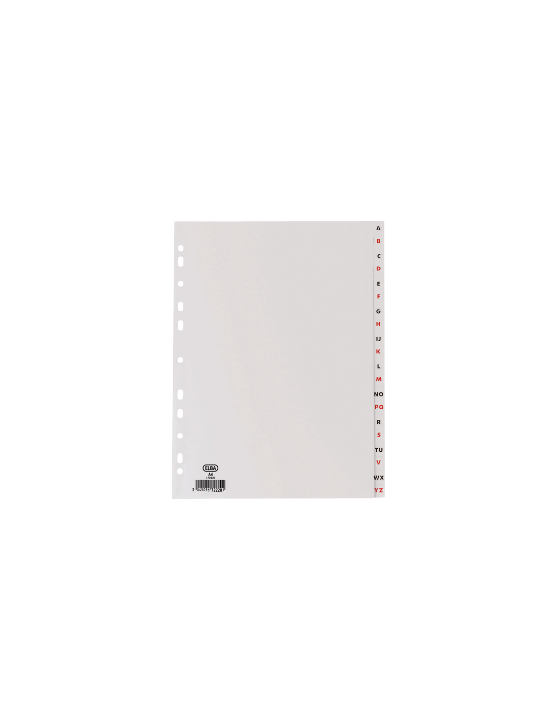 El Elba Índice Alfabético Folio 20 Posiciones es un resistente plástico de 120 micras con un diseño en color gris que permite una organización alfabética eficiente. Ideal para mantener tus documentos ordenados y fácilmente accesibles.