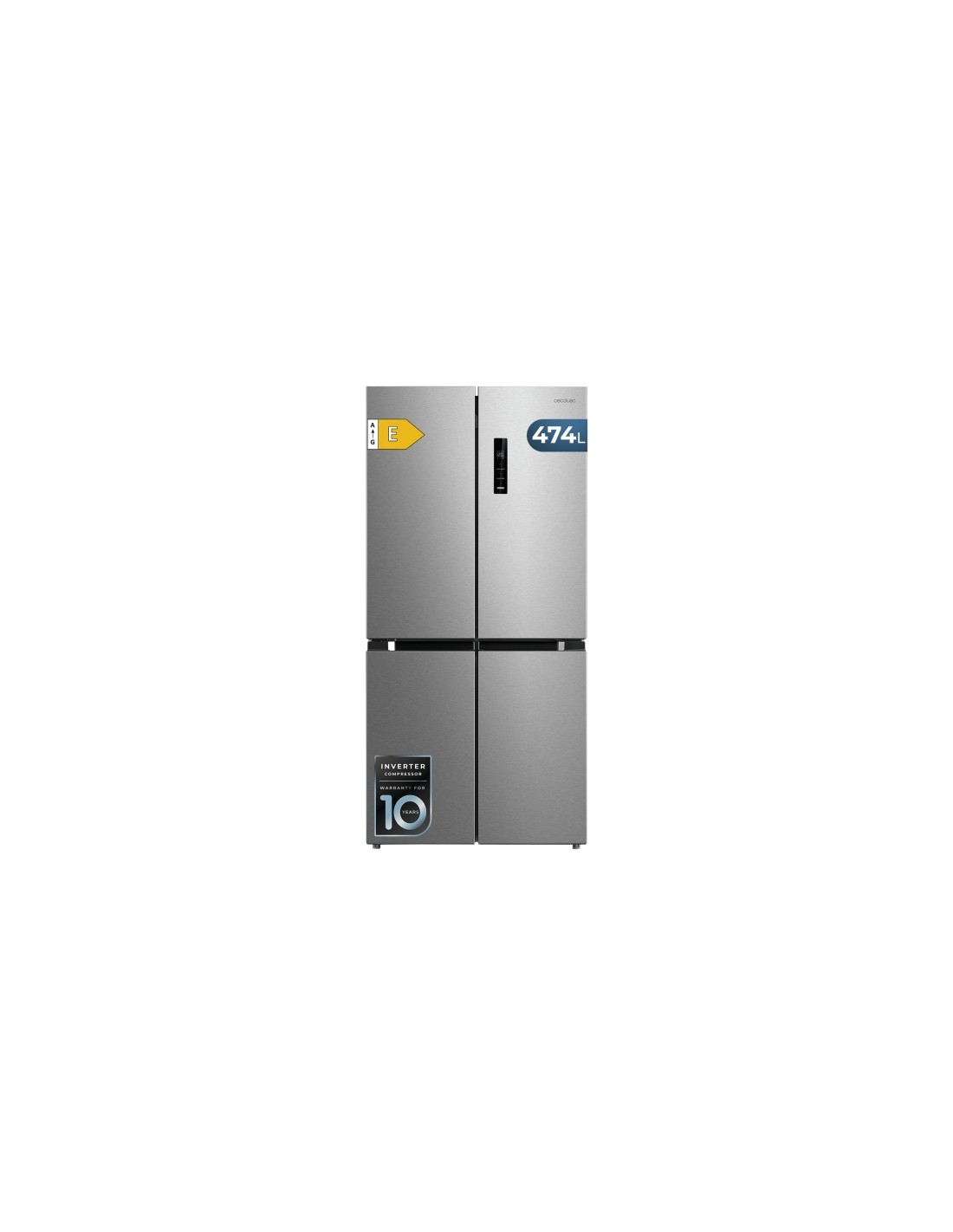 Cecotec Bolero CoolMarket 4D 474 Inox E Frigorifico Americano 4 Puertas - Capacidad 474L - Silencioso 35dB - Luz LED -