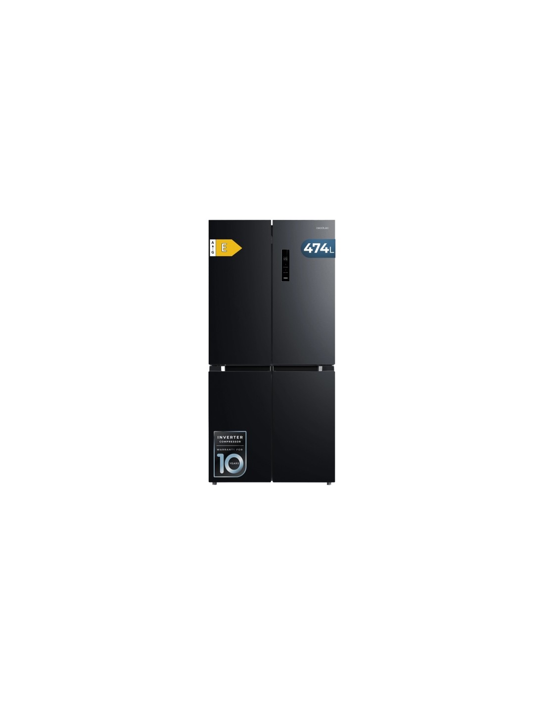 Cecotec Bolero CoolMarket 4D 474 Dark E Frigorifico Americano 4 Puertas - Capacidad 474L - Silencioso 35dB - Luz LED -