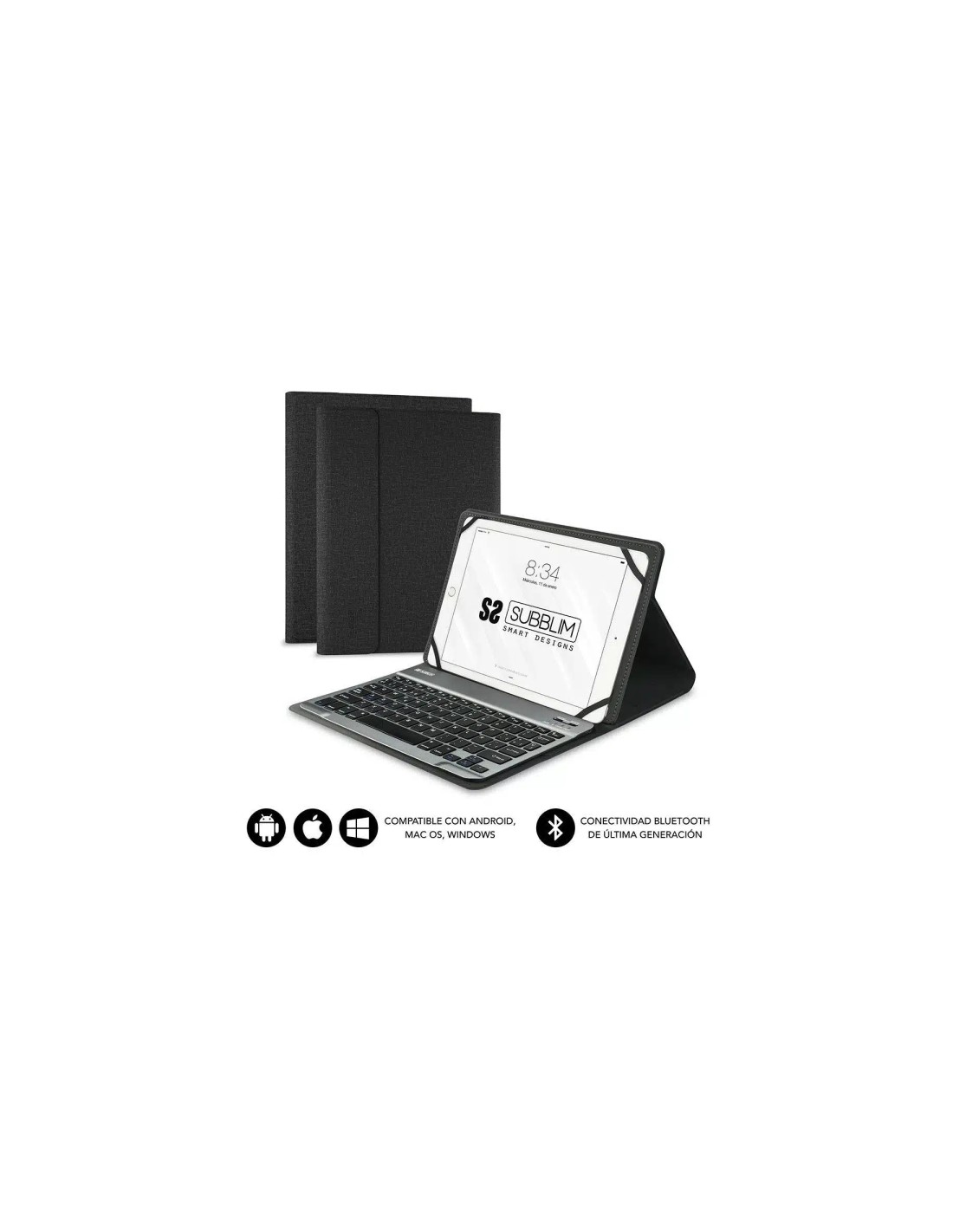 Subblim Teclado Bluetooth extraÃble - Funda universal 9-10.1" - Diseño ultradelgado - Soporte ajustable - Acceso a