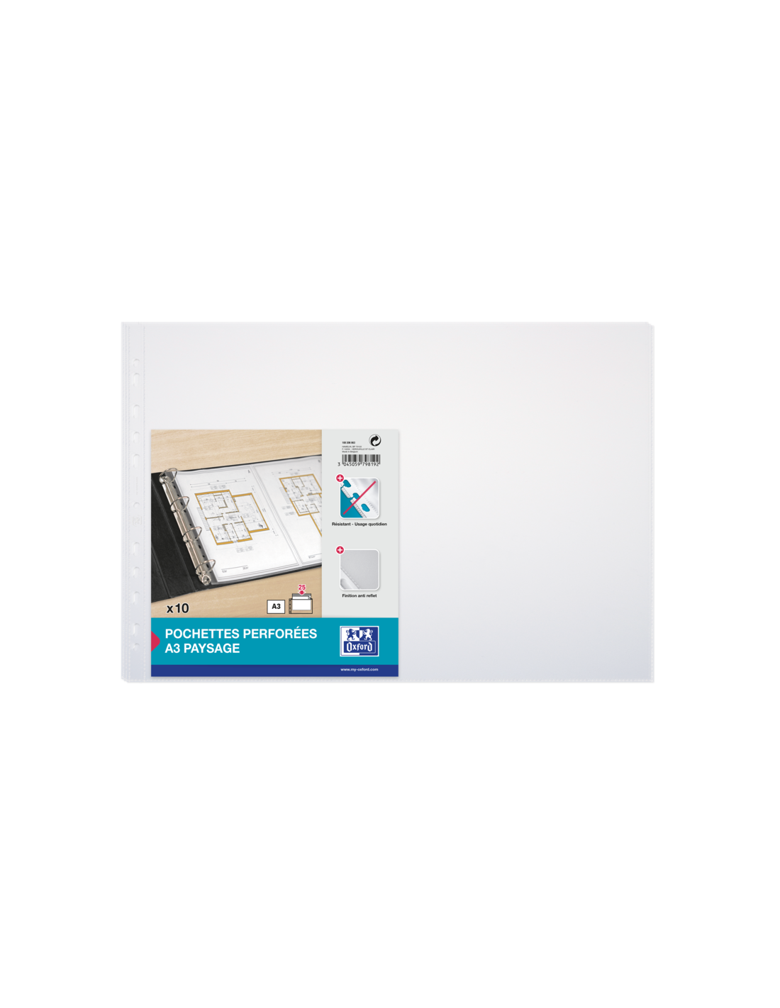 Las fundas multitaladro Oxford A3 apaisado están fabricadas en polipropileno estándar de color piel naranja, con un grosor de 90 micras. Son ideales para proteger y organizar documentos de tamaño A3 apaisado de forma segura y práctica.