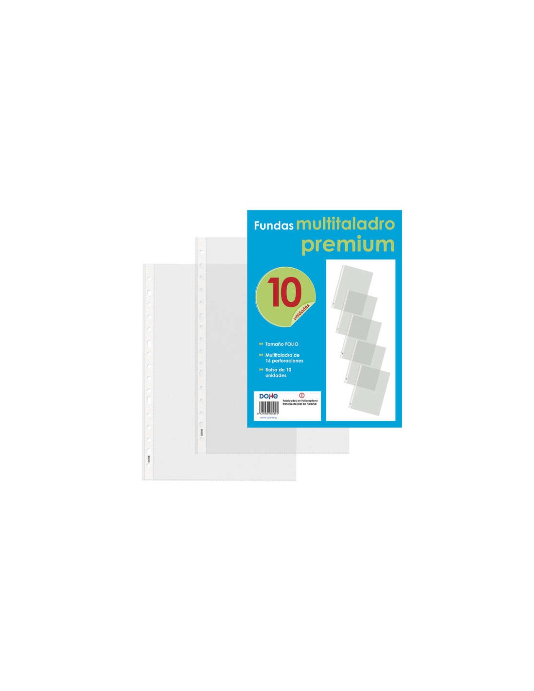 Fundas multitaladro Premium con 16 perforaciones. Polipropileno rugoso. Se sirve en pack de 10 fundas.