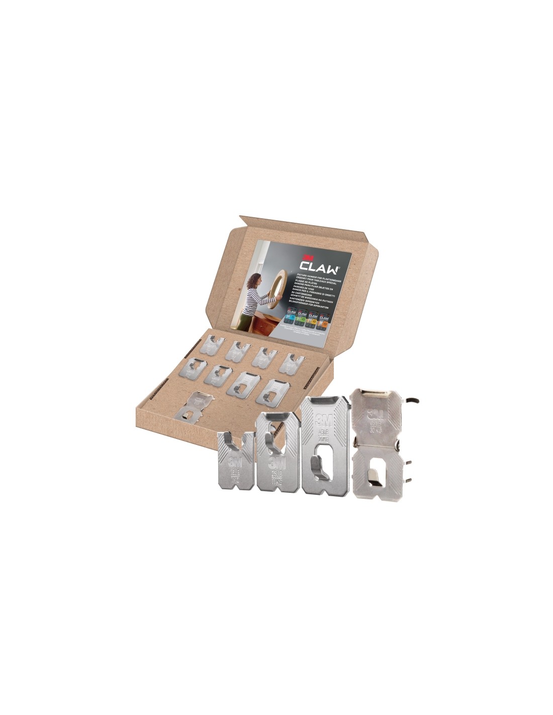 3M Claw Pack de 9 Ganchos de Metal para Paredes de Yeso - Soporta hasta 30kg - Color Gris Titanio