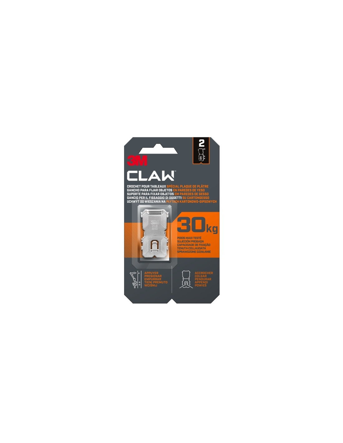 El gancho para paredes de yeso 3M CLAW es la soluci n confiable y f cil para colgar objetos pesados en superficies de paneles de yeso. Dise ado para ofrecer seguridad y resistencia, este gancho ha sido probado para soportar hasta 20 kg, permiti ndote colgar desde cuadros y estanter as hasta equipos m s pesados sin preocuparte por da os o ca das. Su innovador sistema de fijaci n con puntas de acero endurecido asegura una sujeci n firme y duradera en los paneles de yeso, facilitando una instalaci n sencilla y r pida. Solo necesitas empujar el gancho en la pared y colgar tus objetos, sin necesidad de herramientas adicionales ni complicaciones. Caracter sticas: -PRODUCTOS DE ACERO ENDURECIDO: para fijaci n segura en cart n yeso -RESISTENCIA DEMOSTRADA: resistencia probada de hasta 30 kg -SIN HERRAMIENTAS: basta con presionar con los pulgares -SIN PERNOS: se pueden colgar en cualquier pared de cart n yeso -SIN REMORDIMIENTOS: no dejan grandes agujeros en las paredes -INCLUYE: 3M CLAW ganchos para cuadros para paredes de yeso, dise ados para espejos pesados, marcos y decoraci n del hogar -Disponible en paquetes de 2 o 4 ganchos Especificaciones: -Contenido del embalaje: 2 Ganchos -Uso: Interior -Material: Acero inoxidable -Peso soportado (sistema m trico): 30 kg -Tama o: Extragrande (XL) Dimensiones: -Anchura total (sistema m trico): 30.7 mm -Espesor: 1.1 mm -Longitud total: 50.8 mm
