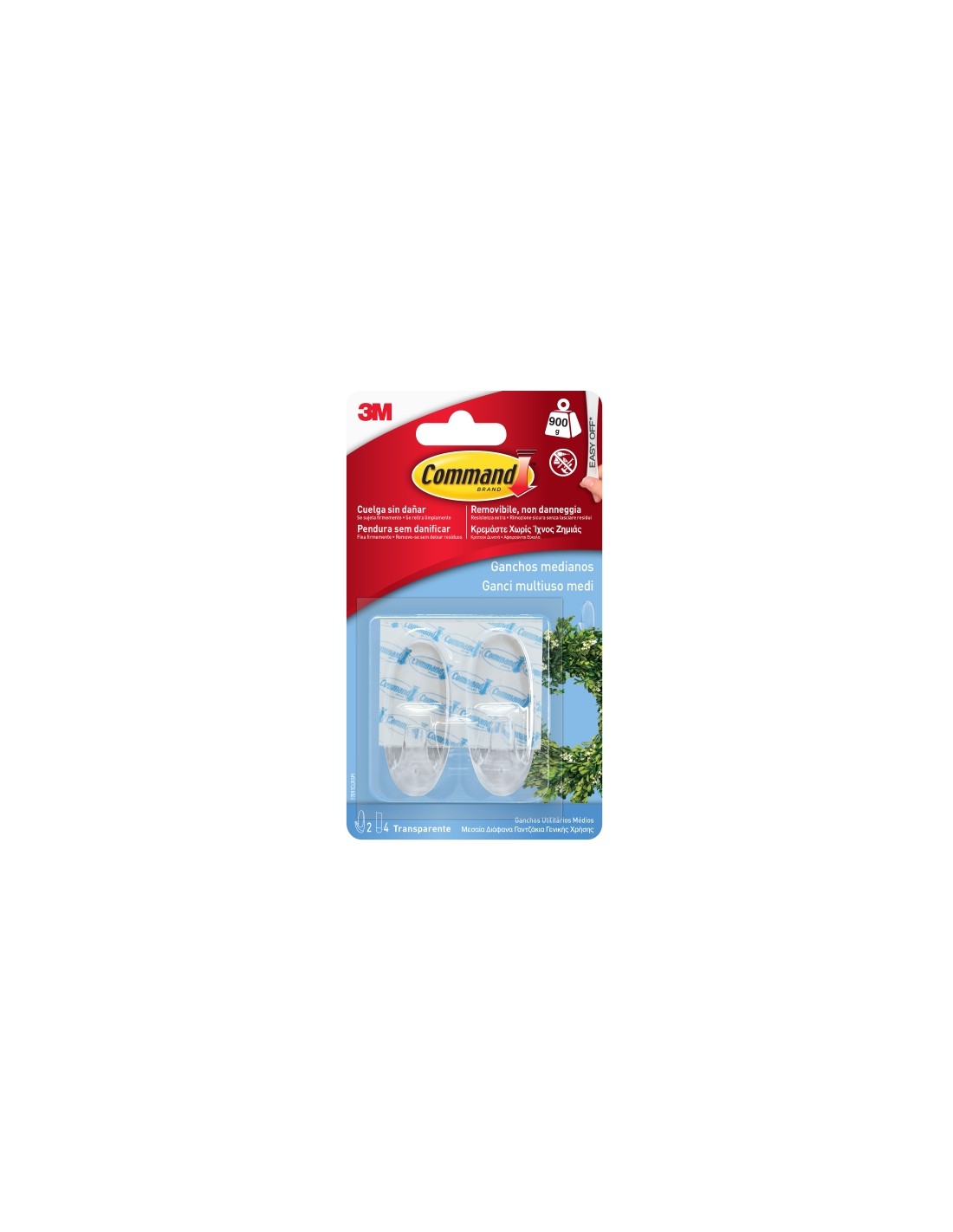Los ganchos transparentes medianos con tiras transparentes Command representan una soluci n innovadora y pr ctica para organizar y decorar espacios sin preocuparse por da os en las superficies. Ideales para colgar accesorios, objetos decorativos de temporada, utensilios de limpieza y otros art culos de peso medio, estos ganchos ofrecen una sujeci n segura y una f cil remoci n sin dejar residuos ni marcas. Gracias a la avanzada tecnolog a adhesiva de 3M, garantizan una adherencia firme y una retirada limpia, manteniendo la integridad de tus paredes y superficies. Caracter sticas: -Dise o transparente que combina con cualquier decoraci n -Adecuados para objetos de peso medio -F ciles de colocar y retirar sin herramientas -Tecnolog a adhesiva de 3M que proporciona una sujeci n segura -Sin da os ni residuos al retirar -Capacidad de carga: hasta 900g Dimensiones: -Longitud del gancho: 4.4 cm -Ancho del gancho: 2.2 cm -Profundidad: 1.2 cm