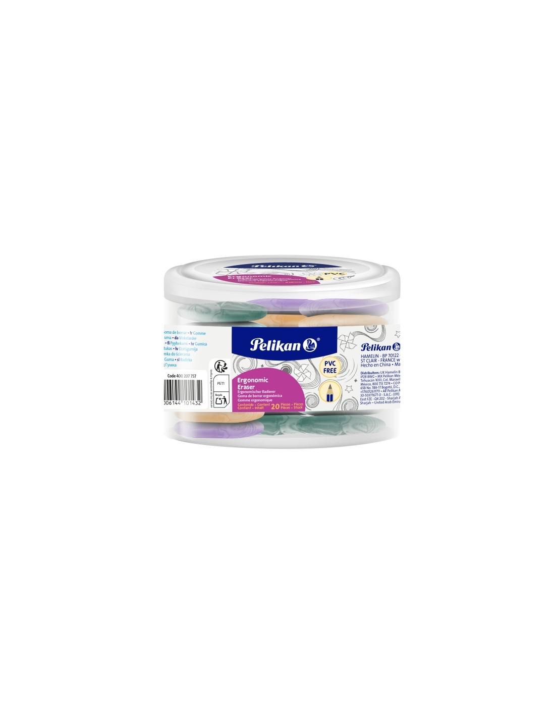 Pelikan Ergonomic Eraser Pack de 20 Gomas de Borrar - Vinilo - sin PVC - Efecto Marmol - Colores Surtidos