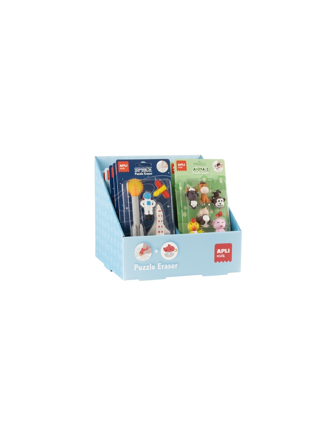 Apli Expositor con 12 Packs de de Gomas Puzzle - Divertidas Gomas de Borrar - Se Pueden Montar y Desmontar para Jugar con