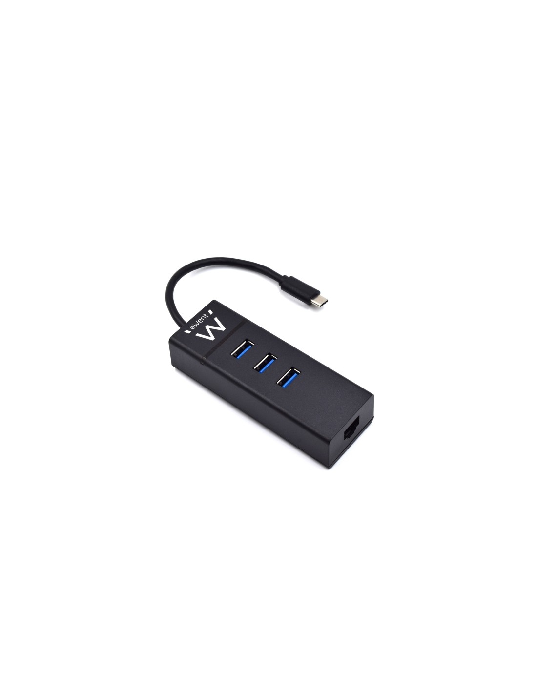 Ewent Hub USB-C 4 en 1 - 3x USB-A - 1x RJ45 - hasta 1000Mbps - Cable de 15cm - Color Negro