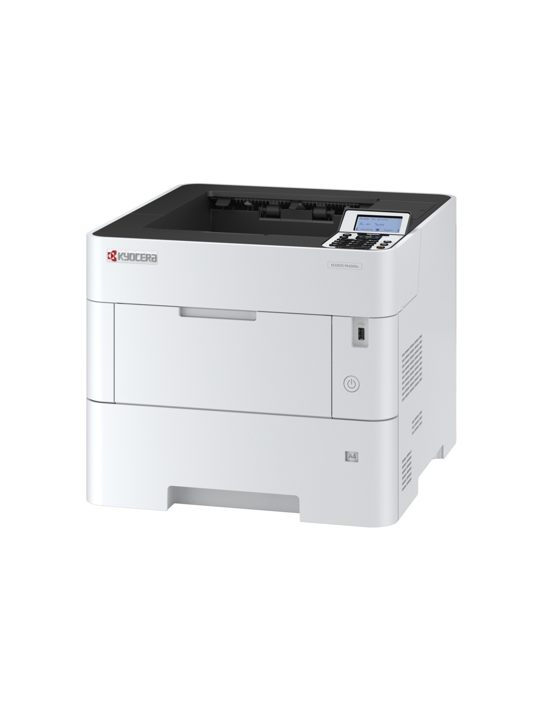 Con una capacidad de papel de hasta 2.600 hojas, sus modernas funciones de seguridad, combinadas con componentes de larga duración que brindan una eficiencia y confiabilidad excepcionales, ECOSYS PA5500x es la opción ideal para aumentar el rendimiento general de los grupos de trabajo. Con una velocidad de impresión de hasta 55 páginas por minuto y una primera impresión rápida, siempre está lista cuando la necesitas. Caracteristicas: -Impresora monocromo A4 -55 ppm en A4 -1200 x 1200 ppp resolución -Impresión dúplex Especificaciones: -Panel de control: LCD de 5 líneas y 21 caracteres -Tipo: Escritorio -Velocidad: Hasta 55 ppm en A4 -Velocidad a doble cara: 39,5 ppm en A4 -Resolución: 1,200 x 1,200 ppp -Volumen de impresión recomendado1: 27.500 páginas/mes -Volumen de impresión máximo1: 250.000 páginas/mes -Vida útil1: 1.000.000 páginas o 5 años -Tiempo de calentamiento: Aprox. 25 segundos o menos -Tiempo de primera página: Aprox. 4,5 segundos o menos -CPU: ARM Cortex-A53 Dual core 1.4GHz -Memoria: estándar 512MB Max. 2.5GB (opcional) -Interfaces estándar: USB 2.0 (Hi-Speed USB), 2 x ranuras USB, Ethernet (10/100/1000BaseT), WiFi opcional (IEEE 802.11b/g/n), ranura para servidor de impresión interno opcional o disco duro SSD opcional, ranura para tarjeta opcional SD / SDHC -Contabilidad integrada: 100 códigos departamentales 1El dispositivo no está diseñado para trabajar con los volúmenes especificados de forma continuada. Funciones de impresión: -Idioma del controlador: PRESCRIBE IIc -Emulaciones: PCL 6 (PCL 5c/PCL-XL), PostScript 3 (KPDL 3), PDF Direct Print, XPS Direct Print -Sistemas operativos: Todos los sistemas operativos actuales de Windows, MAC OS X versión 10.8 o superior, Unix, Linux y otros sistemas operativos bajo petición -Fuentes/Códigos de barras: 93 fuentes escalables para PCL/PostScript, 8 fuentes para Windows Vista, 1 fuente de mapa de bits, 45 códigos de barras (p. ej. EAN8, EAN13, EAN128) con generación automática de sumas de comprobación, así como compatibilidad con códigos de barras bidimensionales PDF-417 bajo PRESCRIBE (PC y otros códigos de barras disponibles como opción) Otros: -Alimentación: AC 220 240 V, 50/60 Hz. -Consumo de energía: Imprimiendo: 676.1 W, Preparado: 9 W, En reposo: 0.5 W -Ruido (nivel de presión acústica: ISO 7779/ISO 9296): Imprimiendo: 56 dB (A), En espera: 30 dB (A) -Certificados: T V/GS, CE -Esta unidad se fábrica de acuerdo con la norma de Calidad ISO 9.001 y la Medioambiental ISO 14.001 Manejo del papel: -Todas las cifras de capacidad de papel indicadas se han realizado sobre un papel de 0,11 mm de grosor. Utilice el papel recomendado por KYOCERA en condiciones normales de uso. -Capacidad de entrada: bypass de 100 hojas: 60 - 220g/m , A4, A5, A6, Letter, Legal, personalizado (70 x 140 - 216 x 356mm), papel banner hasta 915 mm -Depósito universal de papel de 500: 60 - 120g/m A4, A5, A6, Letter, Legal, personalizado (140 x 210 - 216 x 356 mm) -Capacidad máx. de papel incluyendo opciones: 2.600 hojas -Unidad dúplex de serie: impresión a doble cara: (60 - 120g/m ), A4, A5, B5, Letter, Legal, personalizado (140 x 210 mm - 216 x 356 mm) -Capacidad de salida: 500 hojas con sensor de papel lleno y 250 hojas con PT-320 opcional Funciones de impresion: -Lenguaje de control: PRESCRIBE -Emulaciones: PCL6 (5e/XL), PostScript 3 (KPDL), impresión directa de PDF, XPS, TIFF/JPEG, PPML, URF, PWG Raster, PCLm, IBM Proprinter, Line Printer, Epson LQ-850 -Sistemas operativos: todos los sistemas operativos actuales de Windows, Mac OS X Versión 10.9 o superior, Chrome OS, Linux, así como otros sistemas operativos previa petición. -Fuentes/códigos de barras: 93 fuentes escalables (PCL6, KPDL3), 4 fuentes (Calibri), 4 fuentes (Cambria), 1 fuente Bitmap, 45 tipos de códigos de barras unidimensionales, 1 tipo de código de barras bidiensional (PDF417) -Características de impresión: impresión directa de PDF, impresión IPP1.0, E-mail, WSD, impresión segura IPP vía TLS, autenticación Local and de red, encriptación IPsec, HTTPS, LDAP vía TLS, SNMPv3, SMTP vía TLS, POP via TLS, Impresión directa de PDF encriptado, Universal Print, Chrome OS -Impresión móvil: KYOCERA Mobile Print app para iOS y Android, AirPrint, Mopria, Wi-Fi Direct opcional Dimensiones y peso: -Dimensiones (An x P x Al): 380 mm 410 mm 320 mm -Peso: Unidad principal aprox. 16,1 kg con tóner inicial incluido