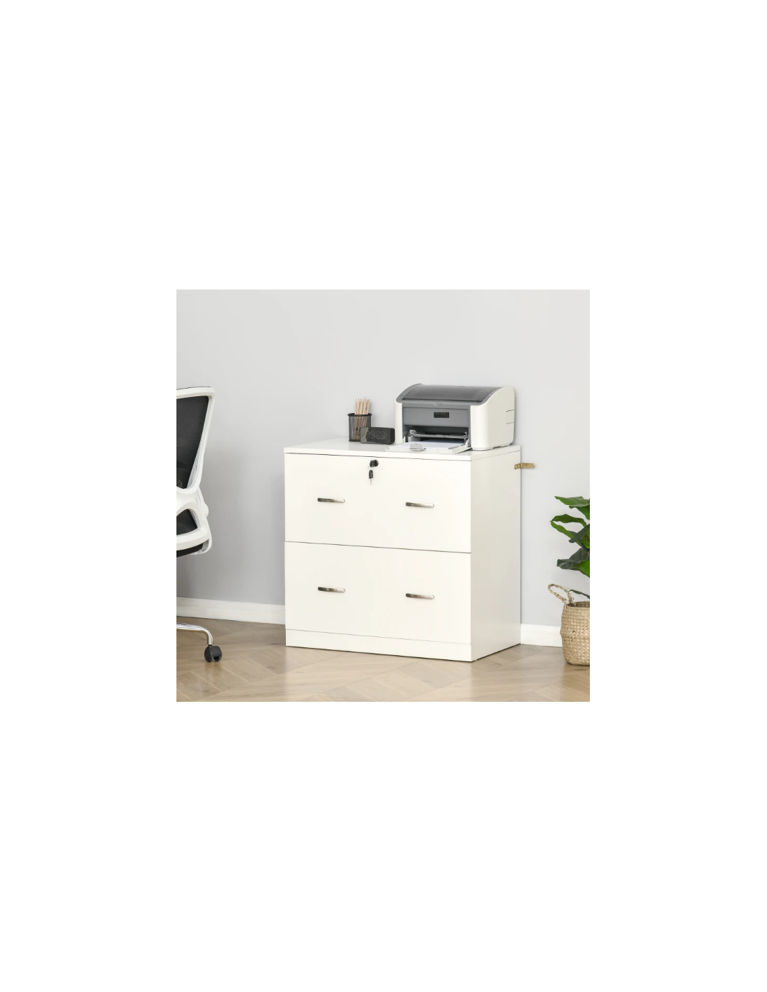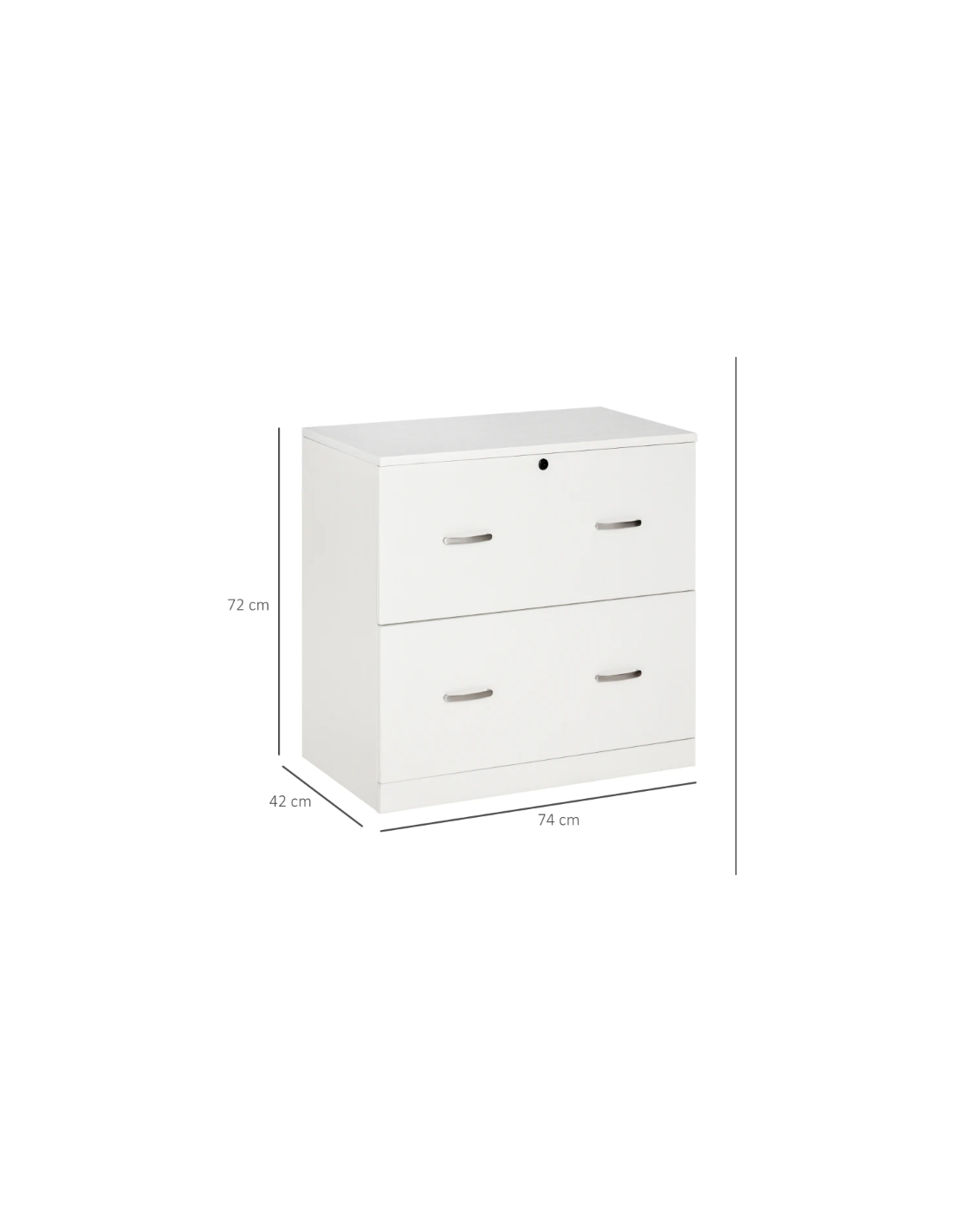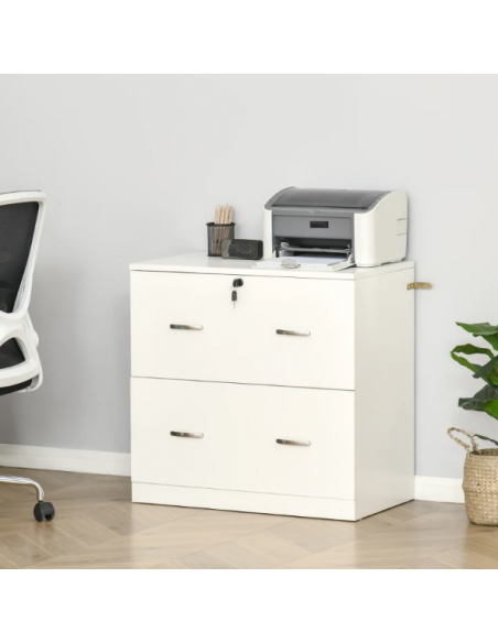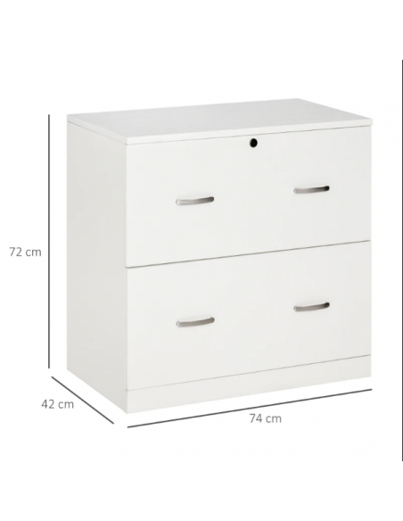 Cajonera para Oficina con 2 Cajones para Documentos en Tamaño A4 Cerradura y 2 Llaves para Estudio Despacho 74x42x72 cm Blanco