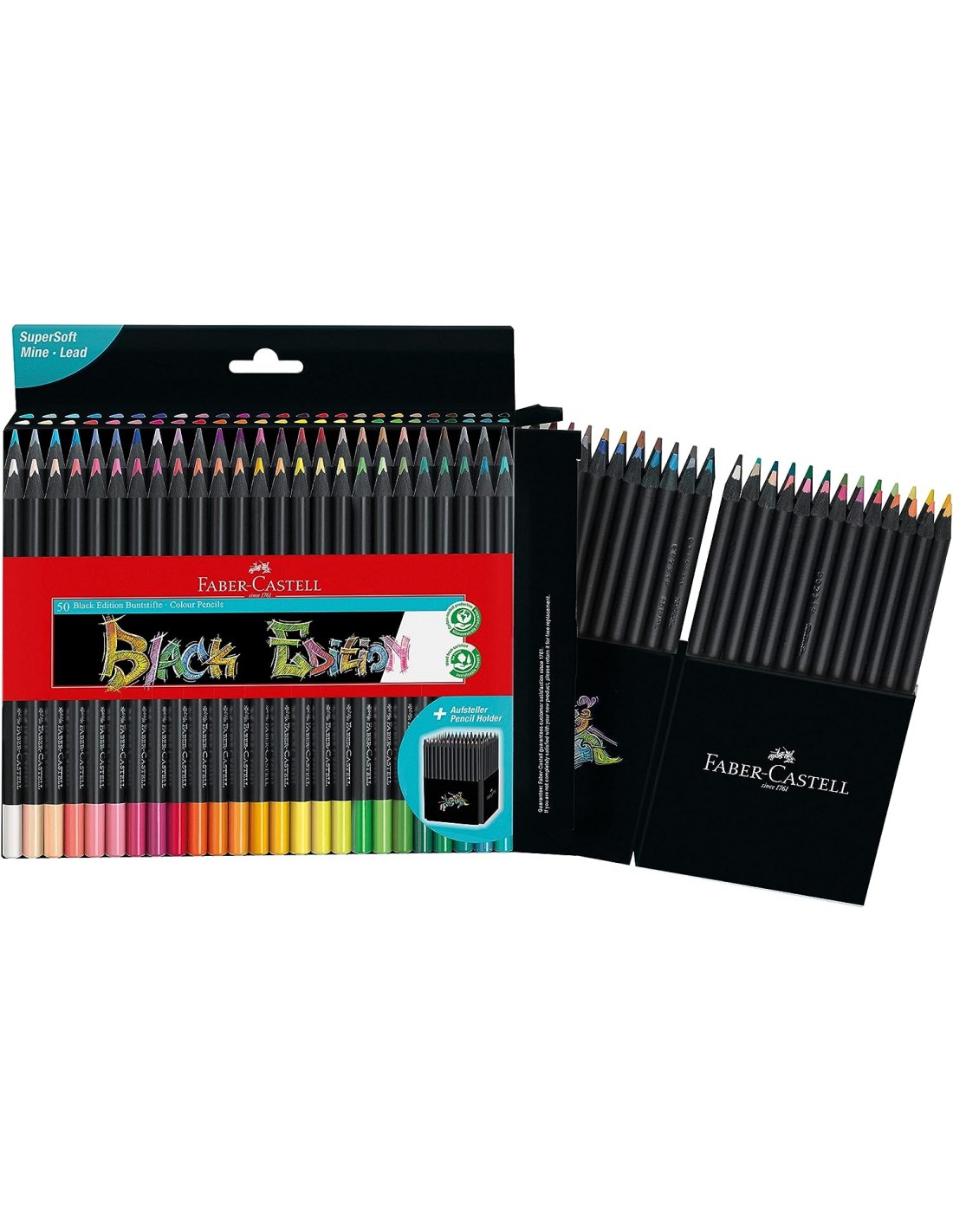 Faber-Castell Black Edition Pack de 50 Lapices de Colores - Mina Supersuave - Madera Negra - Ideales para Dibujo sobre Papel