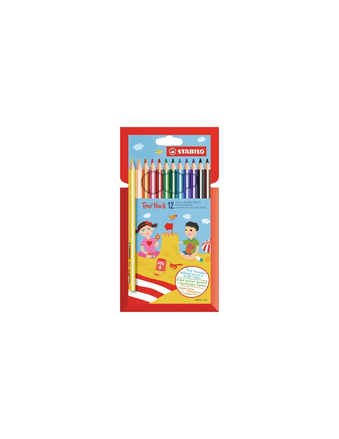 Para peque os artistas STABILO Trio grueso es el l piz de color ideal para peque os artistas gracias a su ergon mica y gruesa forma triangular. Gracias a su forma de l piz extra grueso, los artistas m s j venes de preescolar y primaria pueden colorear durante horas sin que sus manos se cansen o se acalambren. La mina de 4,2 mm de grosor est oculta en el interior del l piz de madera. Es especialmente robusta y casi imposible de romper, incluso si el l piz se cae al suelo mientras colorea. Los vivos colores del STABILO Trio thick con gran cobertura despiertan el inter s por probar y ser creativo, y animan a los j venes artistas a descubrir su talento. Caracter sticas: -L piz de color grueso de forma triangular ergon mica. -Su forma triangular y longitud corta lo hacen perfecto para los ni os. -La mina de 4,2 mm de espesor es muy robusta y duradera. -Disponible en 12 colores intensos.