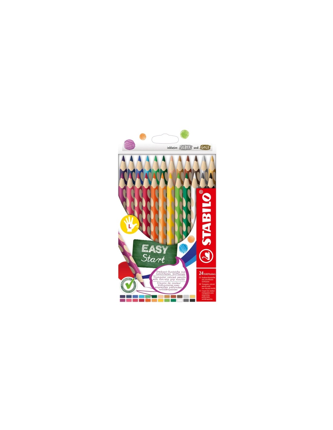 Stabilo Easycolors Pack con 24 Lapices de Colores Ergonomicos - Mina de 4.2mm - Forma Triangular - Uso Zurdo- Colores Surtidos