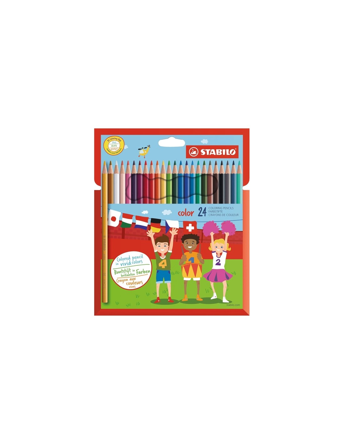 La calidad de la mina STABILO hace que necesite poca presi n para colorear, lo que evita que la punta se rompa. El l piz de color ideal para el colegio. Caracter sticas: -L piz de color con nuestro cl sico nivel de calidad. -Di metro de mina 2,5 mm. Especificaciones: -De cart n, con leng eta para colgar. -Con leng eta para colgar. -24 colores.