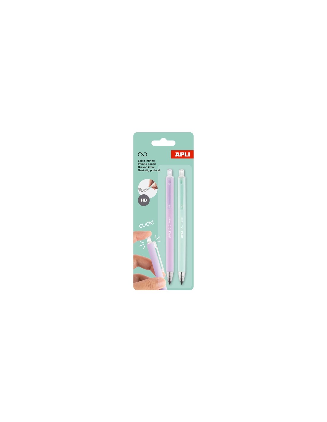 Apli Infinite Pencil Pack con 2 Lapices Infinitos Retractiles HB - Colores Lila y Verde