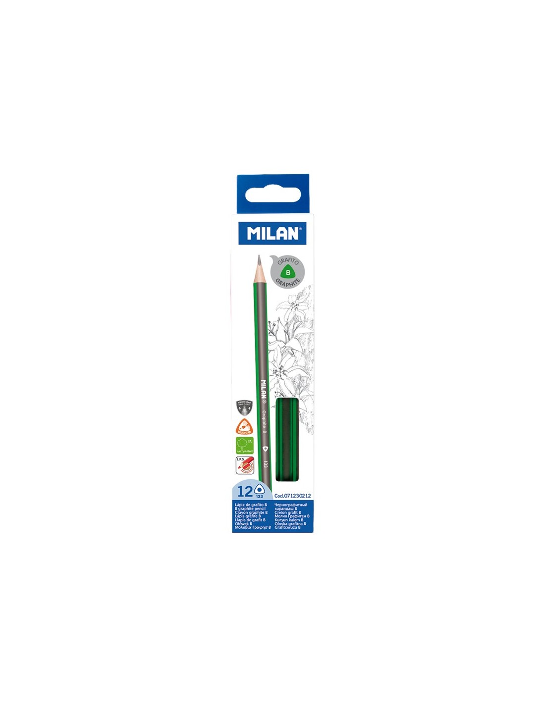 Milan Pack de 12 Lapices de Grafito Triangulares - Mina B de 2.4mm - Resistente a la Rotura - Para Escritura y Dibujo