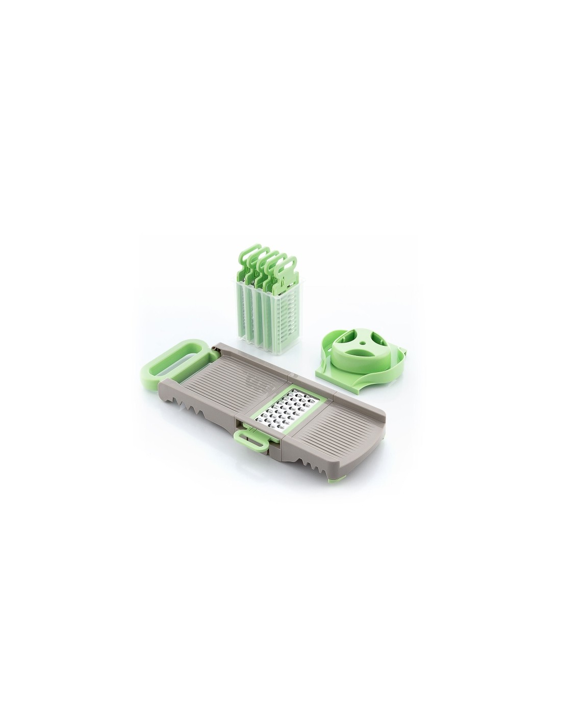 La Mandolina Rallador Plegable 6 en 1 Choppie InnovaGoods es la herramienta perfecta para quienes buscan rapidez, comodidad y versatilidad en la cocina. Su dise o innovador combina m ºltiples funciones en un solo dispositivo compacto, permitiendo cortar y rallar verduras de forma eficiente, segura y sin esfuerzo. Fabricada en ABS y acero inoxidable, ofrece resistencia, durabilidad y un rendimiento ptimo en el d a a d a. Gracias a su estructura plegable y desmontable, ocupa muy poco espacio y resulta ideal para cocinas modernas donde la practicidad es esencial. Incluye 6 accesorios intercambiables: tres ralladores (fino, grueso y desmenuzador) y tres cortadores (juliana, cuchilla plana y cuchilla ondulada), lo que permite preparar una amplia variedad de recetas saludables sin grasas y en menos tiempo. Sus pies antideslizantes y el asa de sujeci n garantizan una firme estabilidad durante el uso, mientras que el protector anticortes y el cepillo limpiador aportan seguridad e higiene. Ligera, manejable y apta para lavavajillas, esta mandolina rallador es un complemento imprescindible para quienes desean cocinar de forma pr ctica, r pida y creativa. Caracter siticas: -Material: ABS, acero inoxidable -Color: Gris, verde -Tipo: Cortadora de verduras -Dise o innovador y funcional: Ahorro de tiempo y esfuerzo -Desmontable -Plegable: Ahorro de espacio -Cocina sana y original: Cocina r pida sin grasas -Multifunci n: Un completo y eficaz cortador de verduras y rallador con accesorios -3 accesorios ralladores: Fino, grueso y desmenuzador -3 accesorios cortadores: Juliana, cuchilla plana y cuchilla ondulada -Pies antideslizantes y asa de sujeci n: Firme sujeci n -Incluye: Protector anticortes y cepillo limpiador -Muy c modo y pr ctico, de gran utilidad en la cocina: F cil de usar, ligero y manejable -F cil limpieza: Apto para lavavajillas -Compacto: F cil de transportar y guardar -Medidas aprox.: 14.5 x 14 x 16 cm -Packaging, manual y recetas en 24 idiomas: ingl s, franc s, espa ol, alem n, italiano, portugu s, holand s, polaco, h ºngaro, rumano, dan s, sueco, fin s, lituano, noruego, esloveno, griego, checo, b ºlgaro, croata, eslovaco, estonio, ruso, let n