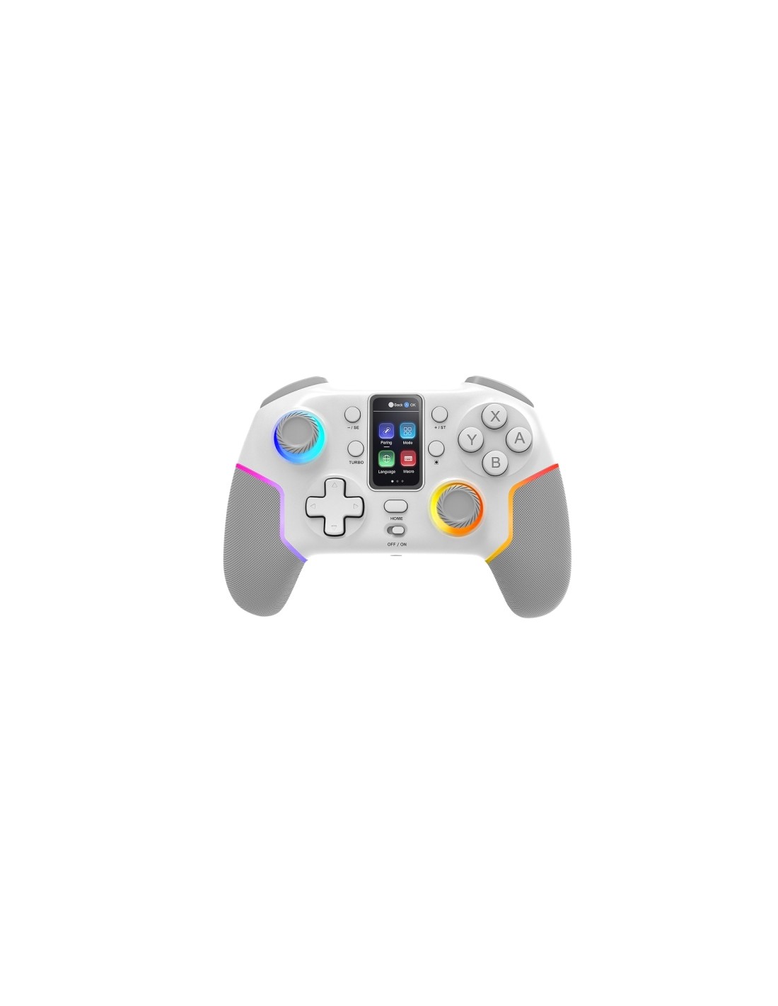 Lleva tu experiencia gaming al siguiente nivel con el gamepad avanzado MGP-V3 Dise ado para ofrecer m ximo confort y precisi n en largas sesiones de juego, este mando incorpora una pantalla LCD a color, ergonom a mejorada con laterales de goma antideslizante y una espectacular iluminaci n ARGB. Disfruta de m ºltiples opciones de conexi n, controles de alta precisi n y funciones avanzadas que se adaptan a cualquier estilo de juego. Potencia, personalizaci n y compatibilidad total en un solo dispositivo. Caracter sticas: -Triple conexi n: Bluetooth 5.0 / 2.4GPRO / Cable -Pantalla LCD a color -Joysticks y gatillos Hall Effect de alta precisi n y durabilidad -Compatibilidad multiplataforma: Switch, Switch 2, PC, Android, iOS 13.0 y servicios de juegos en la nube Especificaciones: -Iluminaci n: S -Peso: 235g -Voltaje: 5V DC -Dimensiones: 157x108x56mm -Inal mbrico: S -Compatibilidad: Switch, Switch 2, PC, Android, iOS 13.0 o superior y Servicios de juegos en la nube -Extras: Conector Jack 3.5mm para auriculares y Giroscopio de 6 ejes -Color: Blanco -Botones: 11 botones, 2 botones macro traseros, D-Pad, 2x joysticks Hall, 2x gatillos Hall anal gicos, 2x gatillos digitales -Capacidad bater a: 1000mAh -Conexi n: Bluetooth 5.0, cable, 2.4GHz -Contenido: Cable USB-A / USB-C, adaptador inal mbrico USB 2.4GHz, manual y mando -Vibraci n: Dual -PC input: X-input D-input -Autonom a: 9 horas (RGB OFF) -Aplicaci n m vil: Compatible con Keylinker (S lo Android) -Conector mando: USB-C -Funci n standby: S -Tiempo de carga: 3 horas -Cable: 1m extra ble USB-A / USB-C -PANTALLA: LCD a color -Tipo de iluminaci n: Iluminaci n RGB -Soporte para Smartphone: S