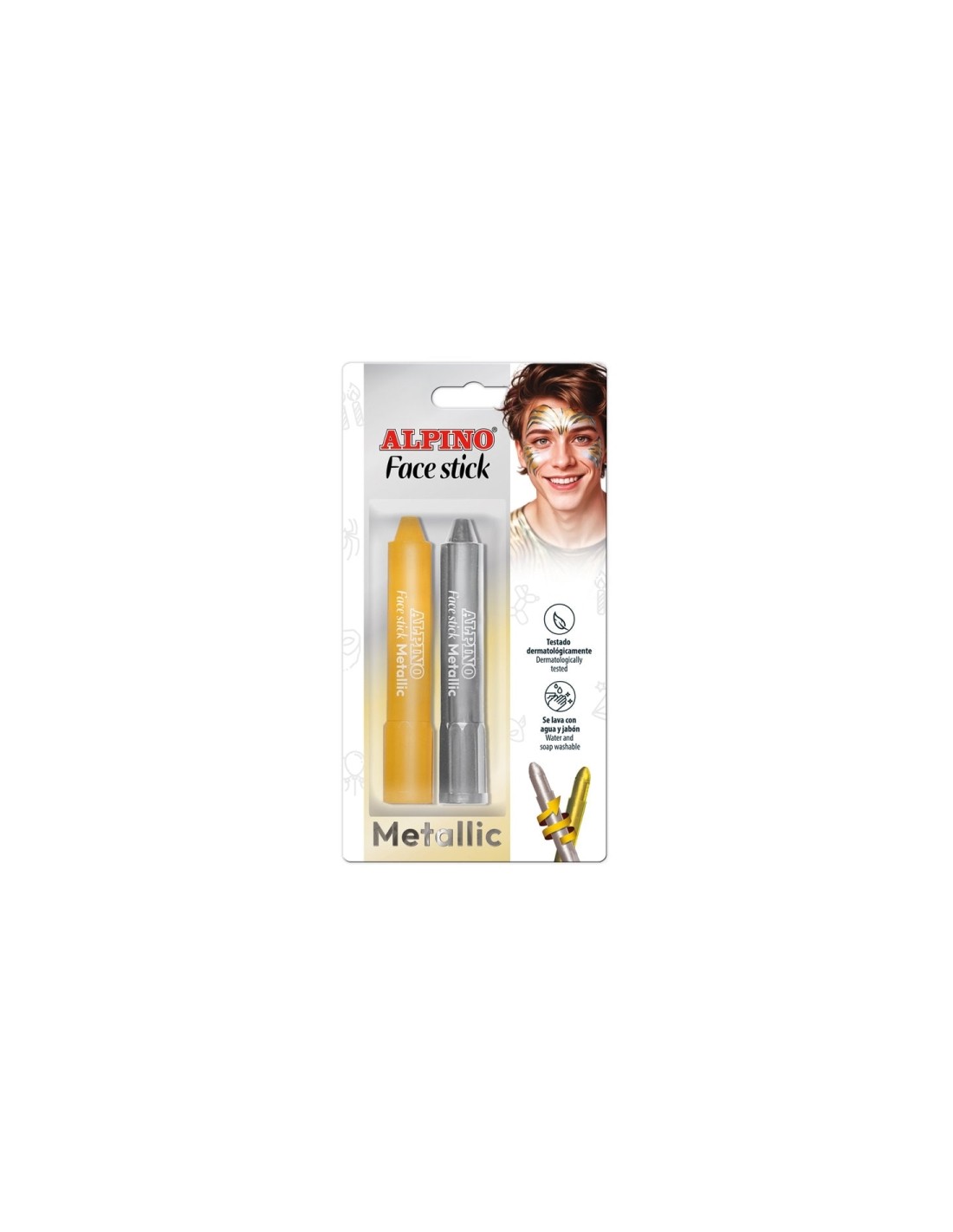 Las barritas de maquillaje Face Stick de Alpino son perfectas para disfrutar de fiestas de disfraces, Halloween o Carnaval. Con ellas te convertir s en la princesa, el animal o superh roe que m s te guste. Convi rtete en el rey de la fiesta Pintura Facial. Las barritas de maquillaje cuentan con un sistema retr ctil giratorio, este sistema te ayudar a poder maquillarte con Face Stick y mantener tus manos limpias. Solo tendr s que retirar la tapa, girar y maquillar. Colores Vivos. Los Face Stick son de colores vivos ideales para las mejores celebraciones, indicado tanto para el uso infantil como adulto. Este maquillaje est listo para usar y no se necesita base de maquillaje ni crema hidratante. Seguro de usar y f cil de limpiar. El sistema Face Stick hace que sea muy sencillo el uso de las barritas de maquillaje, debido a que solo tendremos que retirar la tapa, girar y maquillar. Adem s, una vez aplicado el maquillaje ser muy f cil retirarlo con agua y jab n. Ideal para fiestas de disfraces. Las barritas de maquillaje son ideales para fiestas o actividades infantiles, como maquillaje de Halloween, Navidad, Carnaval, cumplea os, actividades extraescolares Est indicado tanto para ni os como para adultos. Caracter sticas: -Se lava con agua -Testado Dermatologicamente -Contenido: 2 Face Stick