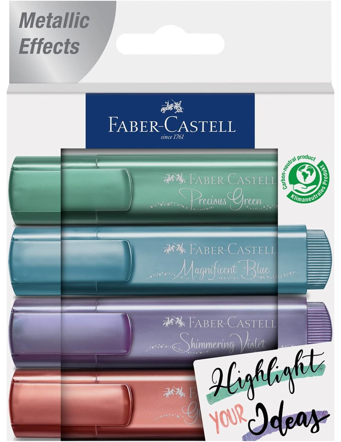Faber-Castell Textliner 46 Metallic Pack de 4 Marcadores Fluorescentes - Punta Biselada - Trazo entre 1mm y 5mm - Tinta con