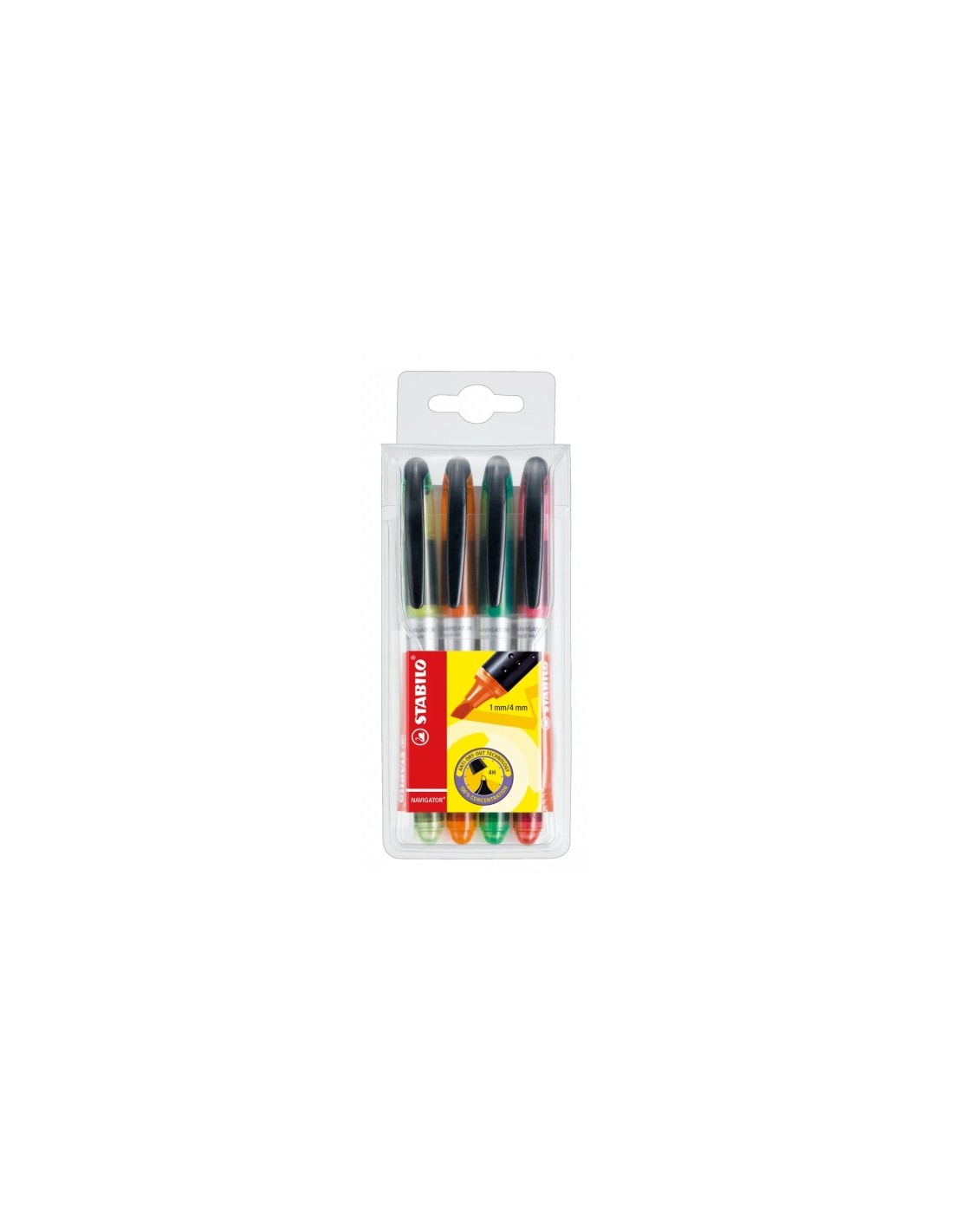 Stabilo Navigator Pack de 4 Marcadores Fluorescentes - Zona de Agarre - Diseño Delgado - Practico Clip para Llevar - Trazo