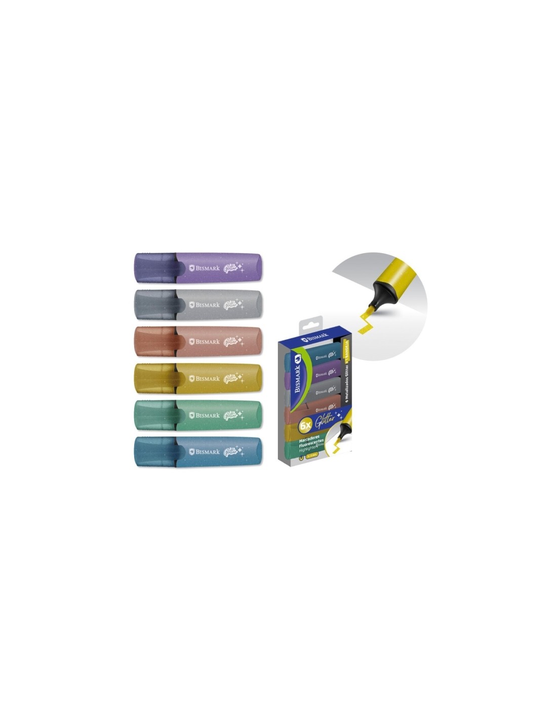 Bismark Pack de 6 Marcadores Fluorescentes Glitter Metalizados - Tinta de Secado Rapido - Punta Biselada - Ideal para
