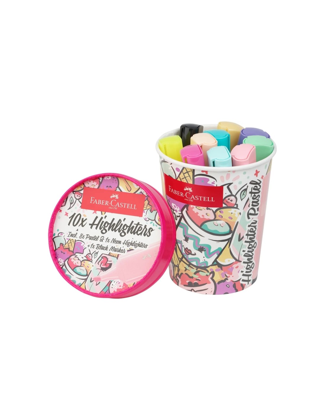 Faber-Castell Textliner 46 Pastel Pack de 10 Marcadores Fluorescentes - Diseño del Pack Tarrina de Helado - Punta Biselada