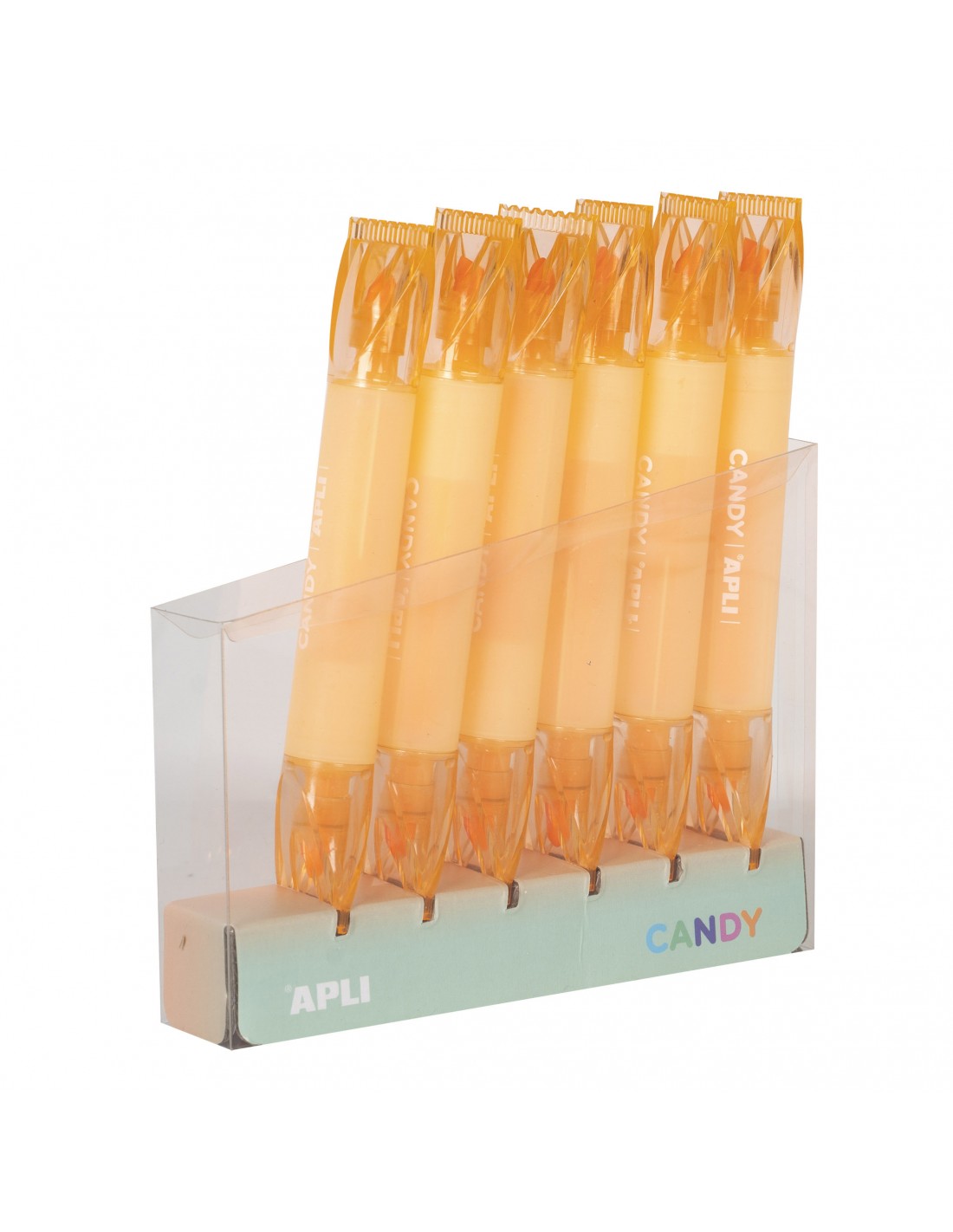 Apli Subrayadores Caramelo - Doble Punta-Plana 5mm y Redonda 2mm - Refill Pack 6 Unidades - Ideal para Agendas-Libretas y