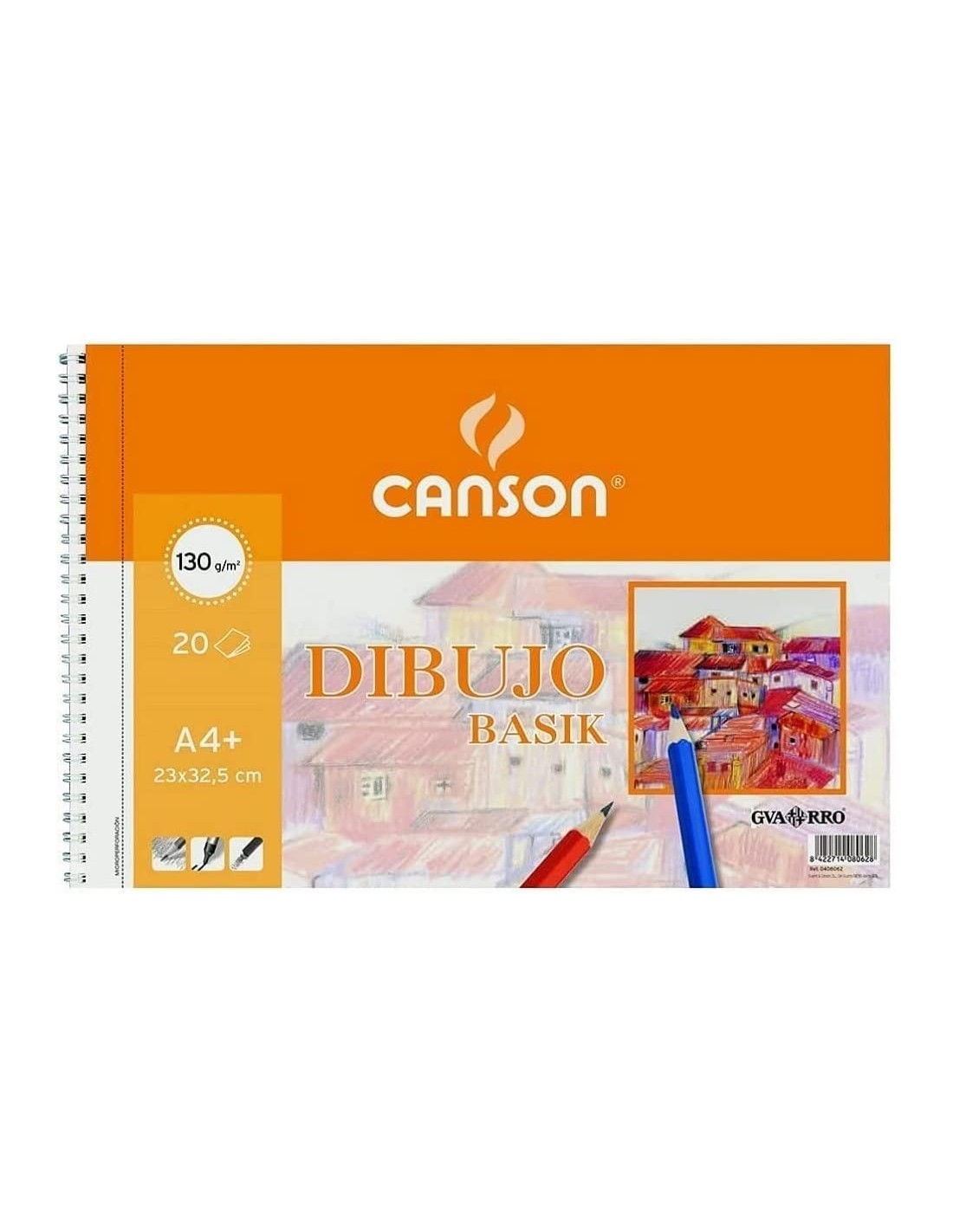 Canson Bloc de Dibujo Basik Liso A4 - Album de Espiral Microperforado - 23x32.5 cm - 120 Hojas - 130g. Características: -El auténtico papel de dibujo. -Papel de color blanco natural, bien encolado. -Ofrece dureza y regularidad en su superficie, ligeramente satinado. -Papel polivalente: es idóneo para dibujo a lápiz y ceras (130 g/m ).