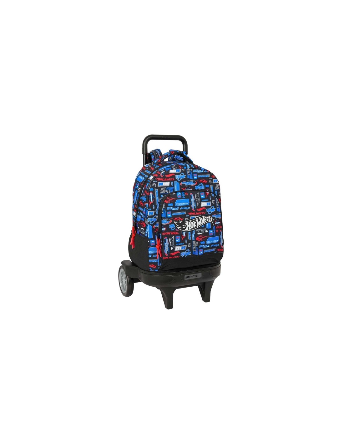 Safta Hot Wheels Mochila con Carro - Extraible - Bolsillo Frontal - Ruedas Antivibracion - Espalda y Asa Acolchada - Tarjeta