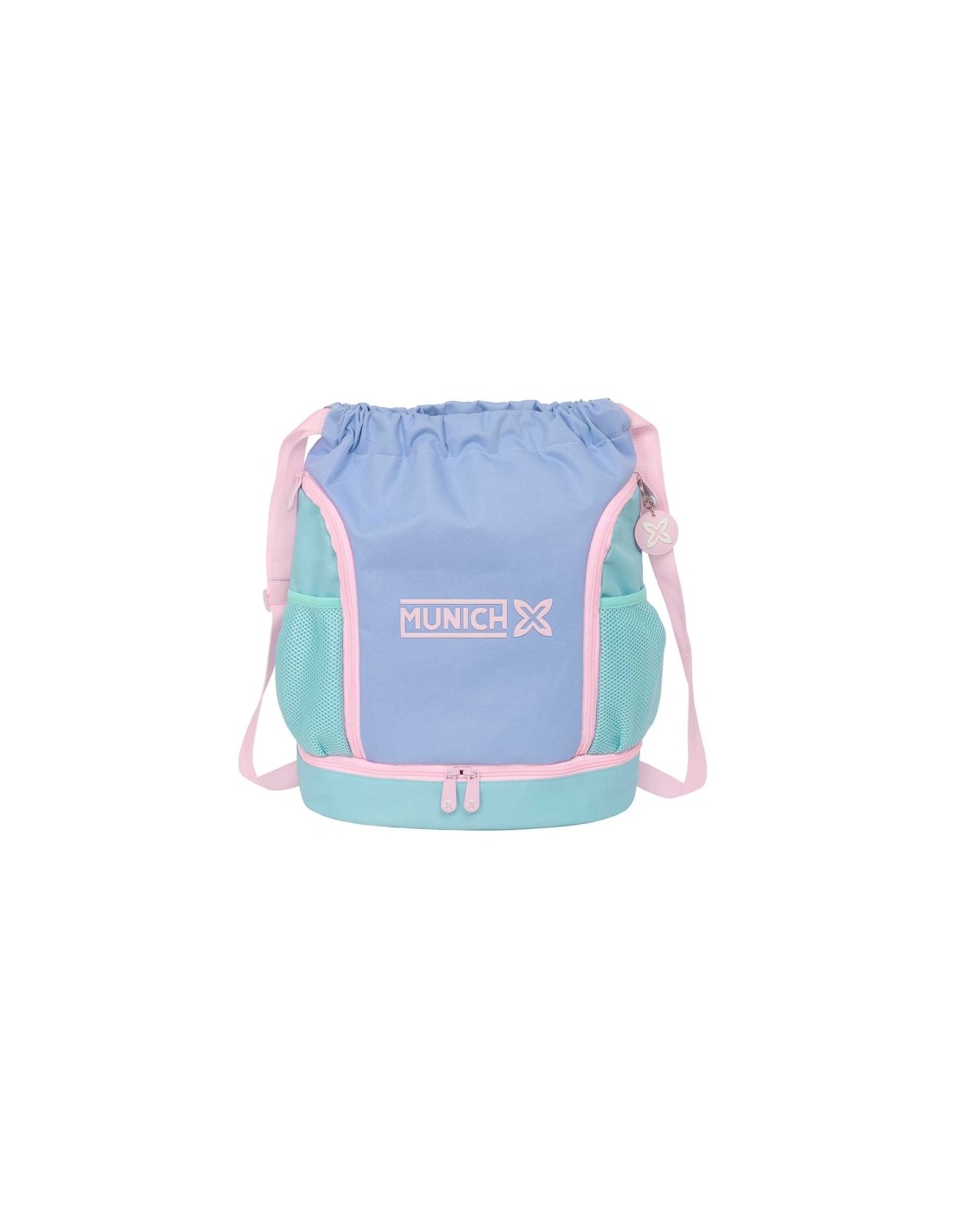 El saco mochila Munich Mellow combina funcionalidad y estilo para acompa arte en tus aventuras diarias. Dise ado con atenci n a los detalles, ofrece un amplio espacio para llevar todo lo que necesitas de manera ordenada y segura. Su dise o ergon mico y ajustable garantiza comodidad durante su uso, adapt ndose perfectamente a tu cuerpo. Ideal para quienes buscan practicidad sin sacrificar el estilo, este saco mochila es perfecto para el d a a d a, viajes cortos o actividades al aire libre. Con m ºltiples compartimentos y bolsillos, podr s organizar tus objetos personales de forma eficiente y acceder a ellos f cilmente en cualquier momento. Caracter sticas: -Bolsillo interior con cremallera -Bolsillos laterales de red portabotellas -Compartimento inferior con cremallera de apertura en 2 direcciones -Bolsillos laterales con cremallera -Hombreras de cinta ajustables -Dimensiones: 340x150x430mm -Capacidad: 21.93 litros
