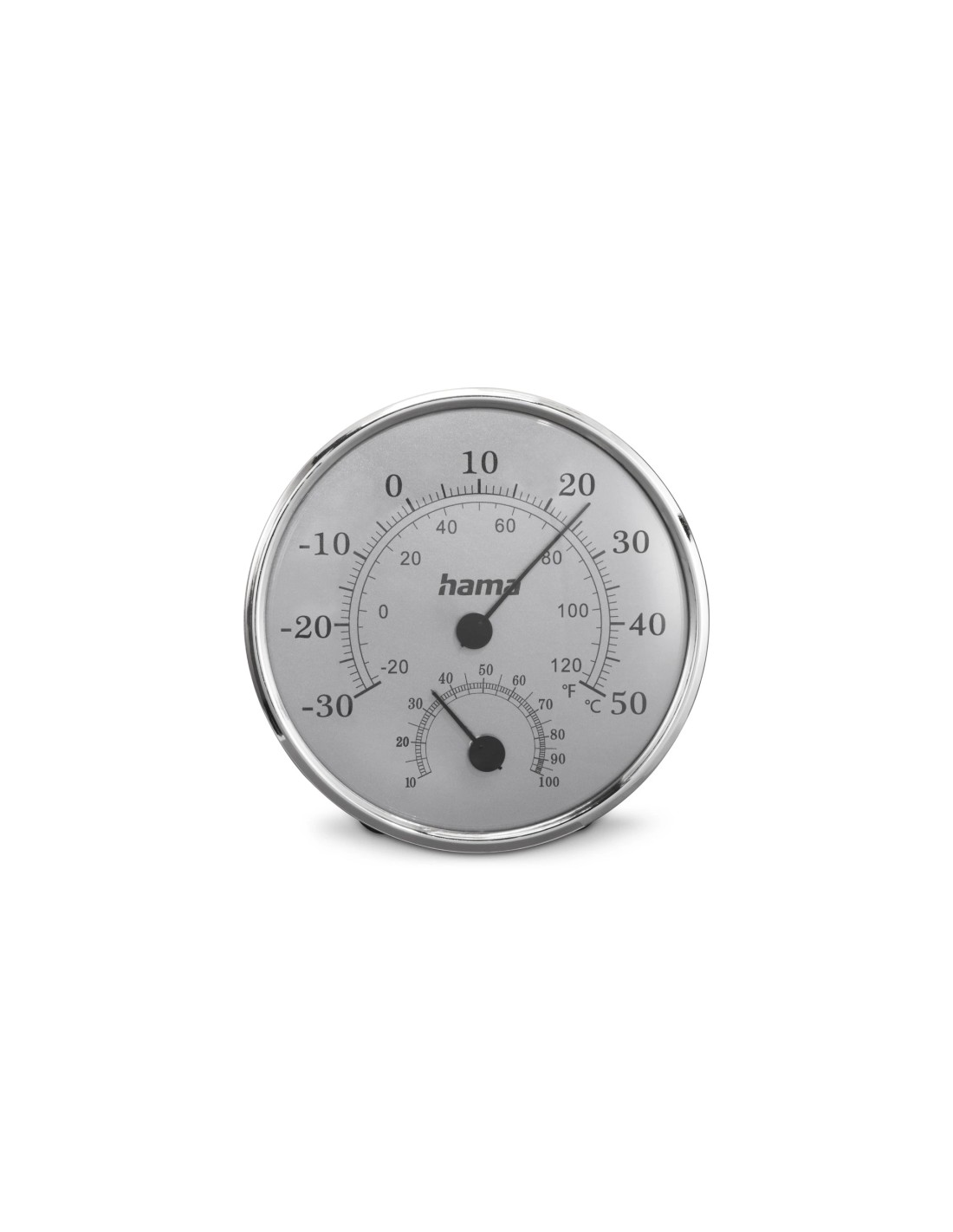 Hama Saipan Medidor de Temperatura y Humedad para Interior - Analogico - Permite Colgar en Pared - Acero Inoxidable -