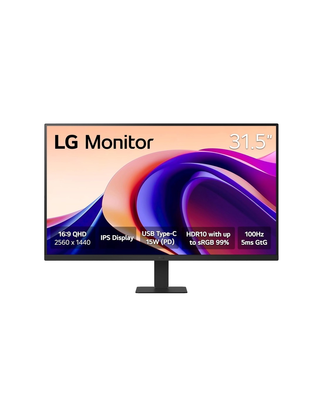 LG Monitor LED 31.5" IPS QHD HDR10 100Hz - Respuesta 5ms - Angulo de Vision 178-- 16 9 - HDMI-USB-C - VESA 100x100mm