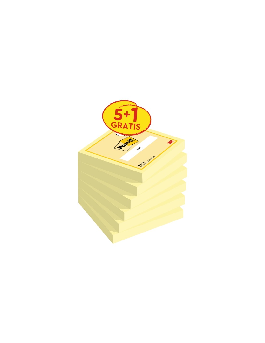 Post-It Pack de 6 Blocs de 100 Notas Adhesivas Reposicionables - 76x76mm - Promocion 5 Blocs-1 Gratis - Color Amarillo Claro