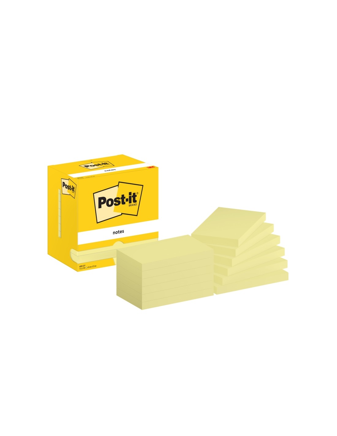 Post-It Pack de 12 Blocs de 100 Notas Adhesivas Reposicionables - Forma Rectangular - 76x127mm - Color Amarillo Claro