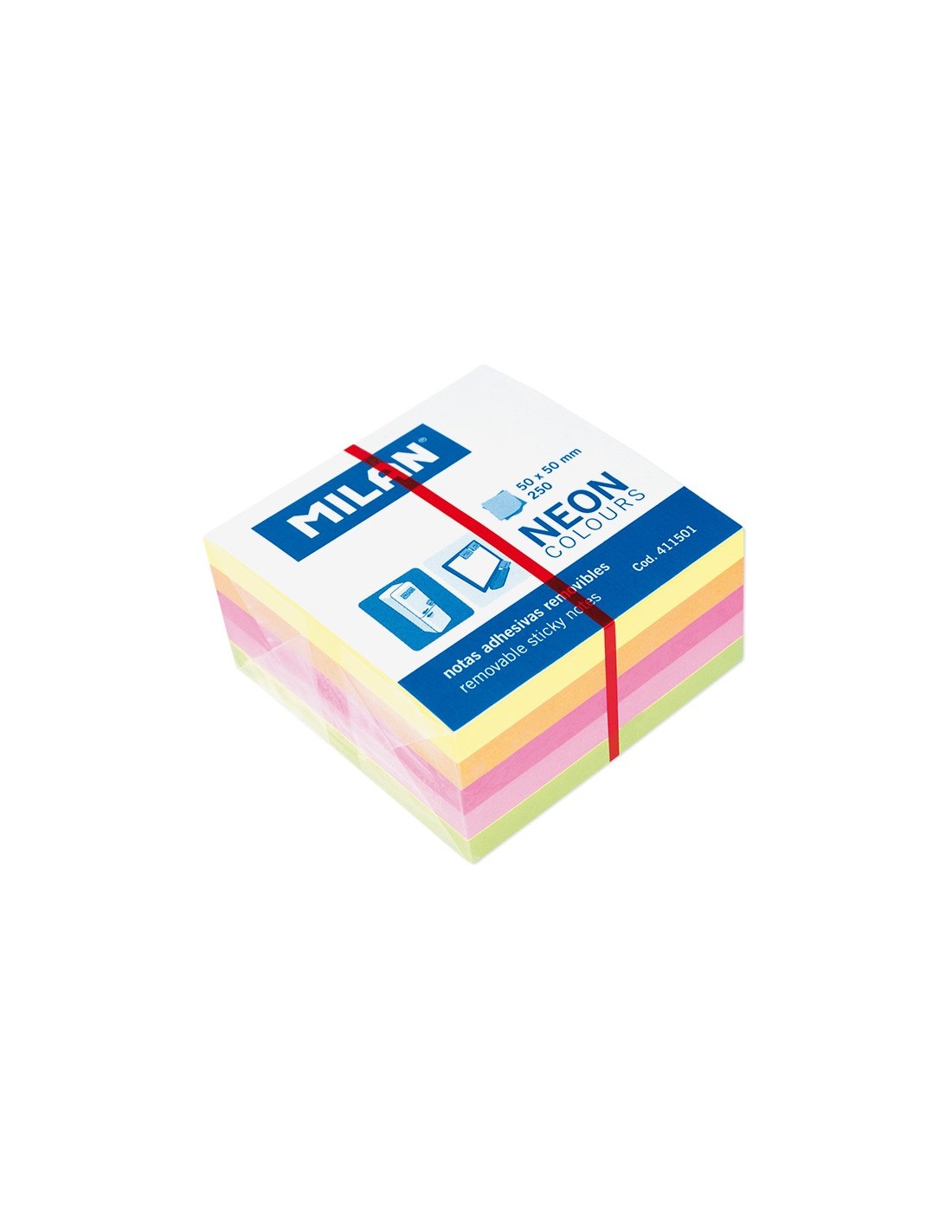Milan Bloc de 250 Notas Adhesivas Neon Mini - Removibles - Medidas 50mm x 50mm - Colores Surtidos