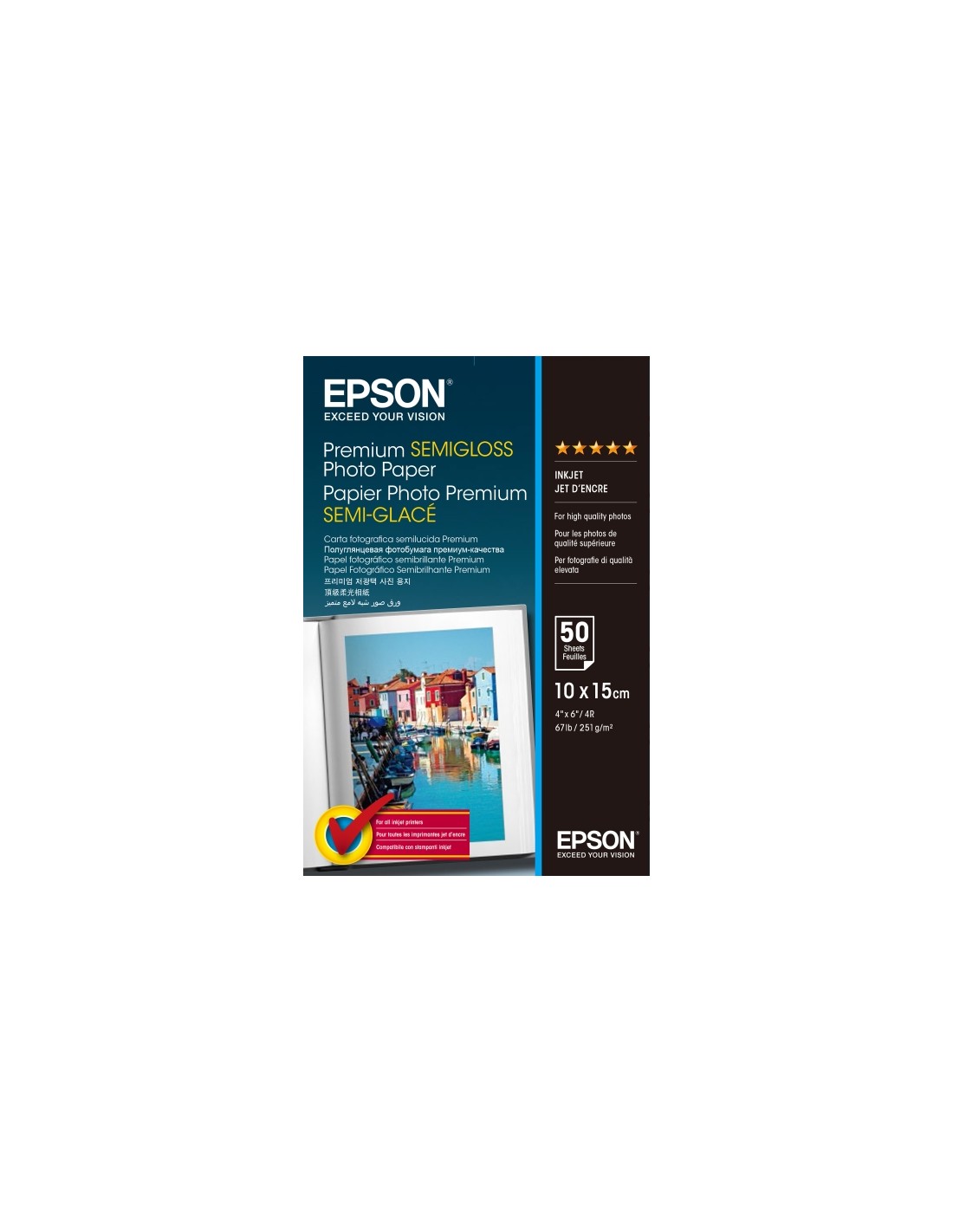 Epson Premium Semiglossy Photo Pack de 50 Hojas de Papel Fotografico - 10x15cm - Gramaje de 251g m2 - Acabado Semibrillante -