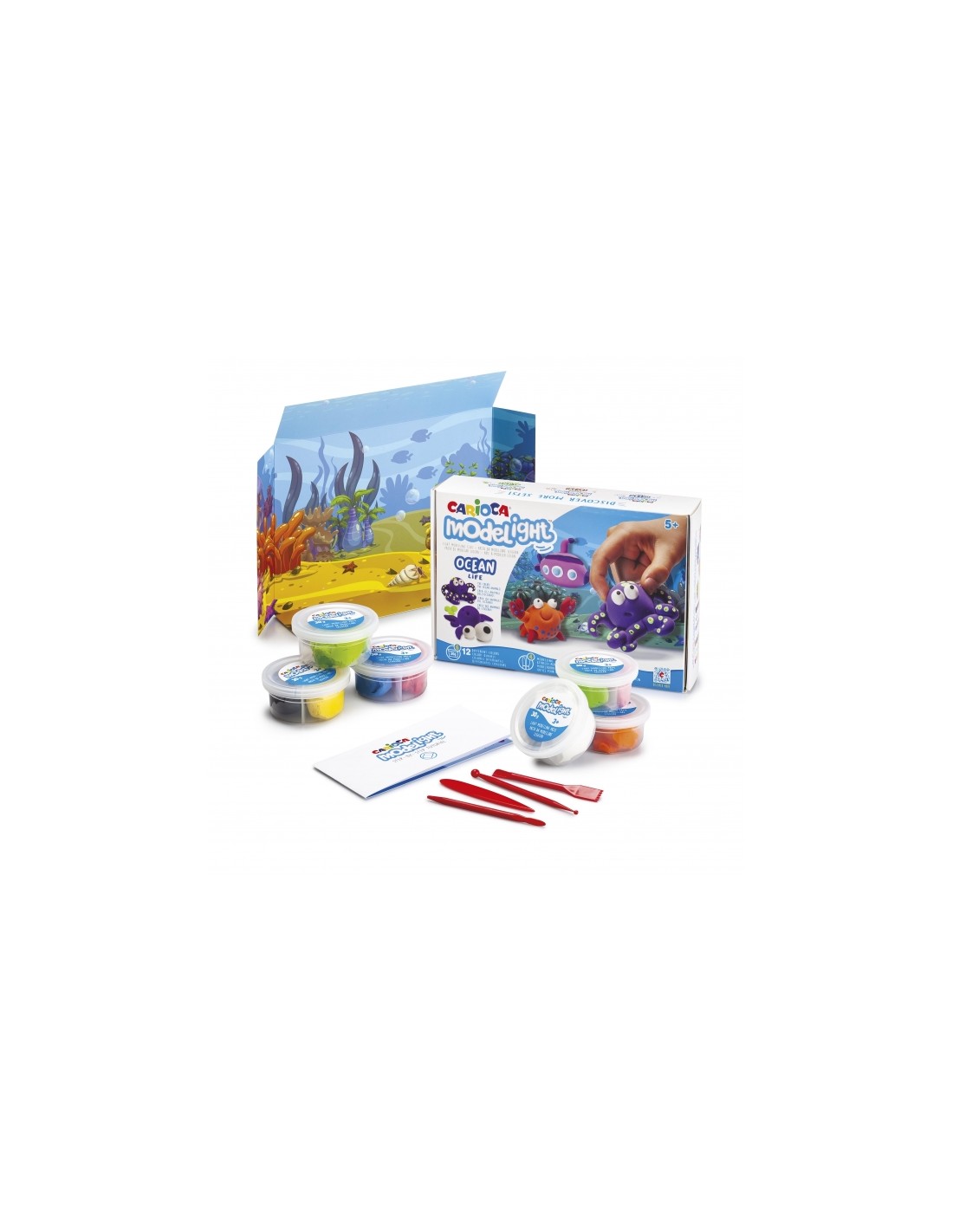 Carioca Modelight Maxiplaybox Ocean Pack de Pasta de Moldear - Super Ligera - Elastica - Maleable - sin Gluten - Se Seca al Aire - Incluye Herramientas y Escenario Características: -Maxi caja juego OCEAN: -Pasta de moldear super ligera, elástica, maleable y sin gluten -Se seca al aire. No necesita cocción y no ensucia las manos -Colores brillantes y mezclables entre ellos -Una vez seca se puede colorear para hacer detalles -Reutilizable si se mezcla con agua -6 vasos de 30g, 4 herramientas de modelación y 1 escenario en cartón -Tutorial paso a paso