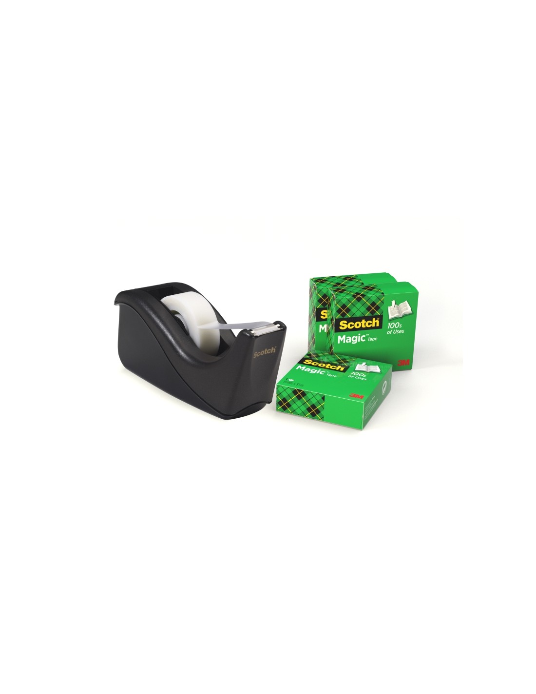 Scotch Dispensador de Cinta Adhesiva - para Cintas de hasta 19mm x 33m - Incluye 4 Cintas Adhesivas - Color Negro