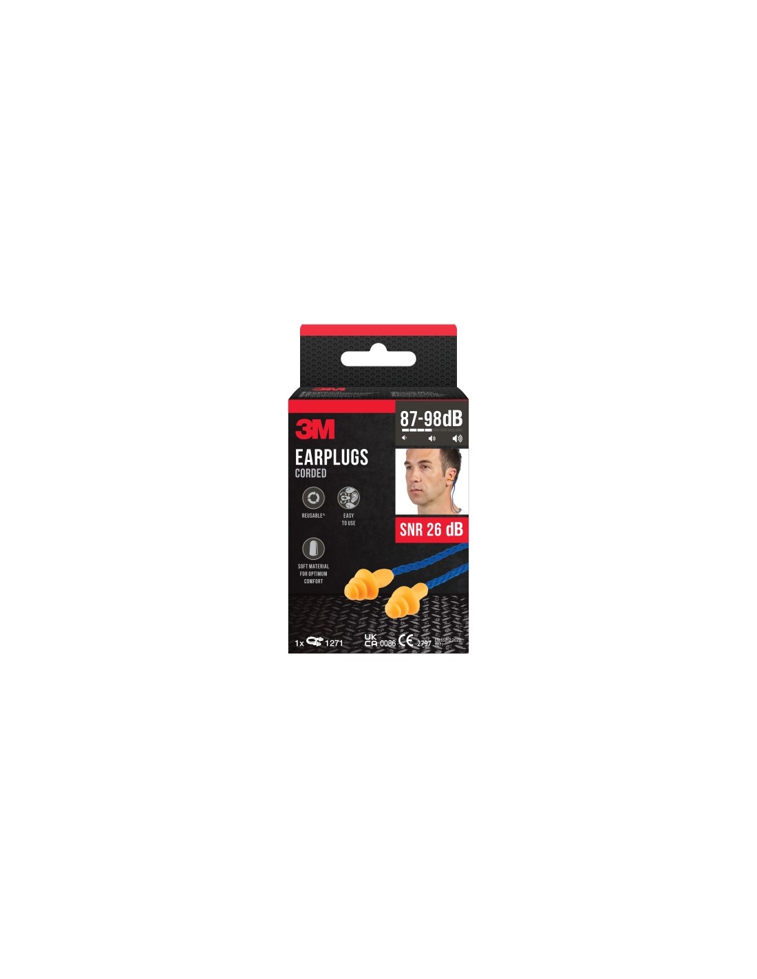 Los tapones con cord n reutilizables 3M 1271 cuentan con un dise o de tres pesta as para un ajuste ptimo en la mayor a de tama os de canales auditivos. Ayudan a reducir los niveles de ruido hasta 26 dB, probado seg ºn EN 352:2020. Utiliza los tapones con cord n reutilizables 3M 1271 para obtener una protecci n c moda y duradera contra niveles de ruido de bajos a moderados. Fabricados con elast mero termopl stico (TPE) suave y duradero, su forma de triple brida es c nica para adaptarse a la mayor a de los tama os de canal auditivo. El dise o de agarre para los dedos hace que la inserci n y retirada sean simples, c modas e higi nicas. Con cord n para mantenerlos unidos y evitar su p rdida. Se pueden lavar con detergente suave. Embalado en un paquete tipo almohada de cart n reciclable y reutilizable. Caracter sticas: -ESTOS TAPONES PARA LOS O DOS AYUDAN A PROTEGER SU O DO: al utilizar herramientas el ctricas, por ejemplo, perforar, aserrar o lijar o al trabajar en el jard n, por ejemplo, cortando o podando el c sped -REDUCCI N DE RUIDO: estos tapones para los o dos ayudan a reducir los niveles de ruido hasta 26 dB -REUTILIZABLE Y LAVABLE: con agua y jab n suave -F CIL DE INSERTAR Y RETIRAR: gracias a la varilla de agarre con los dedos y al dise o de triple brida -CON CORD N: para mantenerlos unidos y evitar su p rdida -Cumple con la norma europea EN 352-2:2020 (CE 2797, UKCA 0086) -Contenido del paquete: 1 par Especificaciones: -Color: Azul, naranja -Tipo de producto: Tapones -Material: Elast mero termopl stico (TPE) -Indice atenuacion de ruido: 26 dB -Cord n: Con cord n
