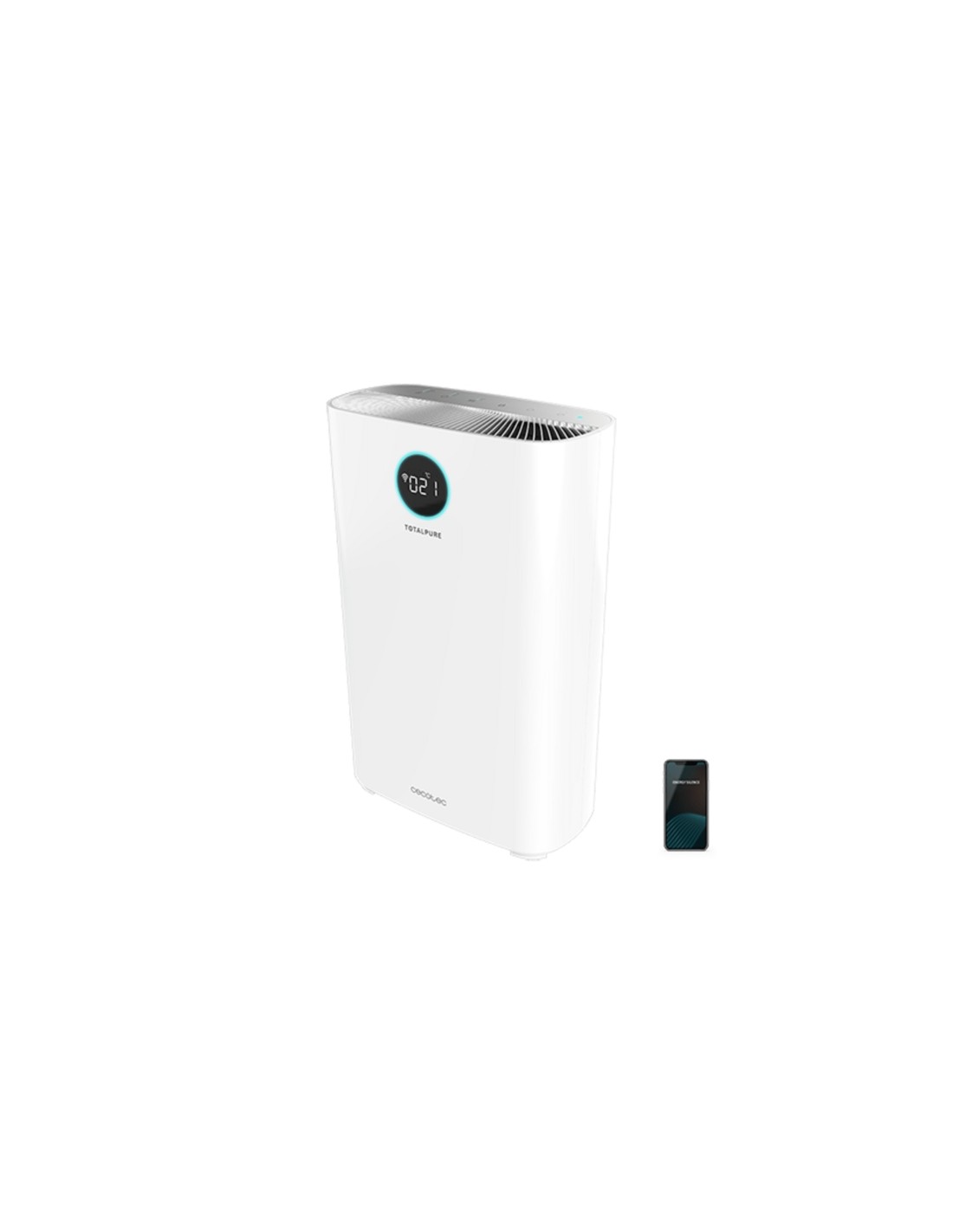 TotalPure 2500 Connected es un purificador de aire de alto rendimiento dise ado para ofrecer un ambiente m s saludable y confortable en tu hogar u oficina. Con un potente CADR de 260 m3/h, puede limpiar eficazmente hasta 130 m3 de espacio, eliminando part culas nocivas y contaminantes del aire en tiempo r cord. Su avanzado sistema de filtraci n, que incluye prefiltro, filtro de carbono activo y filtro de alta eficiencia, garantiza la reducci n de polvo, gases, olores y part culas peligrosas para la salud. Este modelo cuenta con control inteligente v a WiFi, permiti ndote gestionar sus funciones desde tu Smartphone y monitorear en tiempo real la calidad del aire mediante sensores de part culas PM 2.5, temperatura y humedad. La pantalla LED proporciona informaci n clara y actualizada, mostrando datos como la concentraci n de part culas, temperatura, humedad y estado del filtro. Adem s, su panel t ctil facilita la selecci n de modos y velocidades, incluyendo Eco, Baja, Media y Alta, adapt ndose a tus necesidades. El TotalPure 2500 Connected ofrece modos de operaci n vers tiles, como modo Noche para un funcionamiento silencioso y modo Auto que ajusta autom ticamente la velocidad seg ºn la calidad del aire. Tambi n cuenta con temporizador programable, funci n de purificaci n continua, y un sistema de seguridad para ni os que previene manipulaciones no deseadas. Su dise o elegante y compacto se integra f cilmente en cualquier espacio, complementando la decoraci n del hogar. Con un bajo consumo energ tico de solo 20W y un nivel de ruido de 65 decibelios, este purificador combina eficiencia, tecnolog a avanzada y confort para mejorar la calidad del aire en tu entorno diario. Incluye un manual de instrucciones para facilitar su uso y mantenimiento, asegurando un rendimiento ptimo en todo momento. Caracter sticas: -Gran CADR (clean air delivery rate o tasa de suministro de aire limpio) capaz de filtrar y limpiar 260 m3/h de aire de la estancia en la cual se encuentra ubicado. -Sus 3 procesos de filtraci n a trav s del prefiltro, el filtro de carbono activo y el filtro de alta eficiencia, minimizan la cantidad de part culas nocivas para la salud existentes en el aire. -Su control por Wi-Fi mediante un Smartphone permite seleccionar las distintas configuraciones de funcionamiento del purificador y conocer los datos que es capaz de medir. -Su gran volumen de cobertura de 65 m3 convierte a este purificador en el mejor aliado para eliminar las part culas nocivas del aire de una habitaci n o de un peque o cuarto de estar. -El purificador cuenta con sensor PM 2.5, un sensor de concentraci n de part culas contaminantes y perjudiciales para la salud, principalmente de emisiones industriales. -Con la informaci n obtenida gracias a este sensor, el purificador muestra la calidad del aire mediante una escala de 4 colores, siendo azul el mejor y rojo el peor. -Su pantalla LED muestra una gran cantidad de informaci n en tiempo real, gracias a ella se puede comprobar c mo disminuye la concentraci n de part culas nocivas en el aire del hogar. -Las distintas configuraciones de funcionamiento del purificador se realizan de manera t ctil gracias al panel de control ubicado en su cara superior. -Las 4 velocidades del purificador (Eco, Baja, Media y Alta) permiten adaptar su funcionamiento seg ºn la necesidad en cada situaci n. -El purificador posee un temporizador, con el que programar el autoapagado tras 1, 4 u 8 horas. para adaptarse a las necesidades del hogar. -El modo Noche permite continuar purificando el aire reduciendo al m nimo la velocidad y los decibelios, por lo que se puede utilizar mientras se descansa. -El modo Auto es capaz de adaptar la velocidad del purificador seg ºn la calidad del aire en cada momento, y por lo tanto, seg ºn la necesidad de purificaci n. -Cuenta con un term metro, por lo que es capaz de conocer la temperatura a tiempo real, la cual mostrar en su pantalla. -Tambi n posee un higr metro, y de la misma manera mostrar la humedad del ambiente en la pantalla. -Cuando el filtro ya est lleno de las part culas nocivas previamente filtradas, se encender el icono de reset filter indicando que debe ser reemplazado. -Su motor DC maximiza la eficiencia durante el proceso de purificaci n y permite un mejor control de las velocidades y los modos. -La potencia de 20W es suficiente para garantizar un correcto funcionamiento del purificador adem s de un bajo consumo el ctrico. -El purificador tan solo emite 54 decibelios, por lo que su funcionamiento es totalmente silencioso, a ºn m s en su modo Noche. -El purificador cuenta tambi n con un seguro para ni os, evitando as que puedan manipular el mismo y alterar la configuraci n previamente seleccionada. -Su dise o elegante permite ubicar el purificador en cualquier estancia del hogar. Contenido: -Purificador -Manual de instrucciones