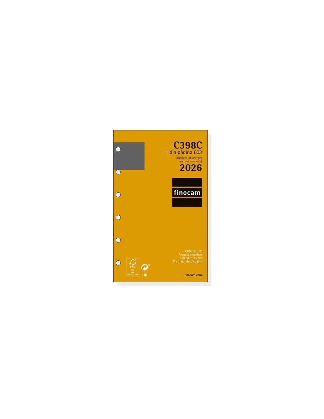 Finocam C398C Recambio para Agendas Classic en Catalan - Anual 2026 - Esquinas Microperforadas - Formato 603 - 79x18x127mm -