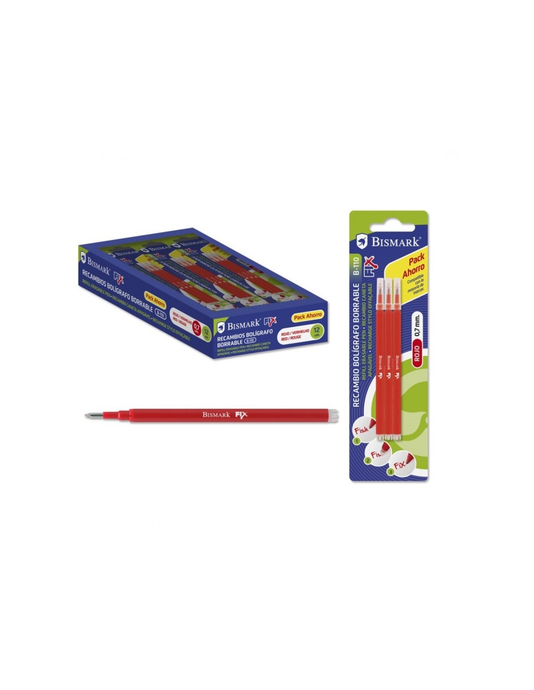 Bismark Fix Pack de 3 Recambios para Boligrafo Borrable Características: -Borrable -Color: Rojo -Punta de 0.7 mm