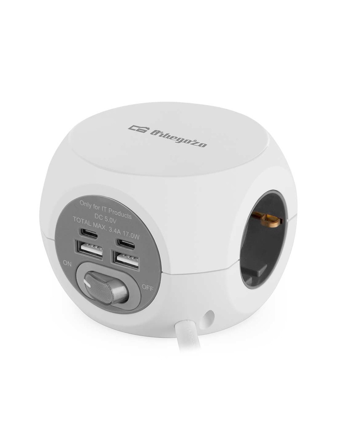 Orbegozo EN 4000 - Enchufe 7 en 1 con Tomas de Tierra y Conexiones USB-C - Compacto y Seguro - Ideal para Viajes - Cable de