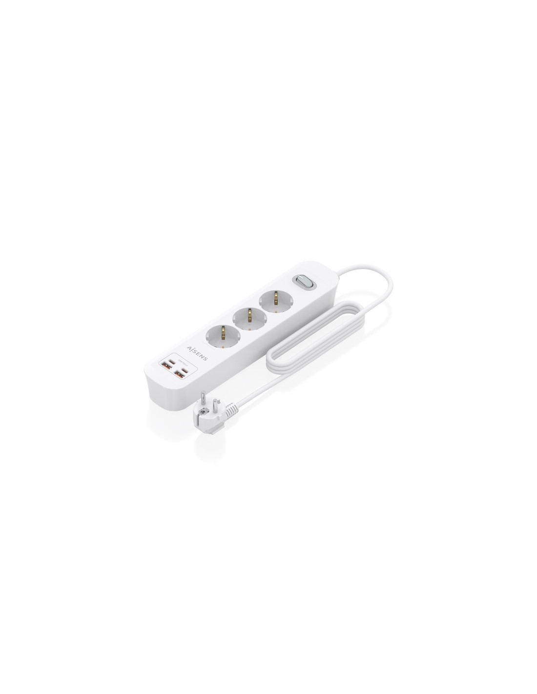 La regleta de enchufes AISENS combina funcionalidad y seguridad en un dise o compacto y elegante en color blanco. Con tres tomas Schuko y un cable de 1.4 metros, ofrece una soluci n pr ctica para conectar m ºltiples dispositivos en cualquier espacio, ya sea en el hogar, la oficina o en entornos de trabajo. Incorpora un interruptor con indicador LED que permite encender y apagar toda la regleta f cilmente, adem s de contar con protecci n infantil para evitar accidentes y material ign fugo que garantiza mayor seguridad durante su uso. Este dispositivo no solo proporciona energ a a tus dispositivos, sino que tambi n cuenta con un cargador USB multifunci n con tecnolog a avanzada. Dispone de dos puertos USB-C y dos USB-A, soportando protocolos de carga r pida como PD3.0 y QC3.0, permitiendo cargar smartphones, tablets, c maras y otros dispositivos de manera eficiente y simult nea. La tecnolog a AI integrada identifica autom ticamente el protocolo del dispositivo conectado para optimizar la velocidad y compatibilidad de carga, asegurando una experiencia segura y r pida. Fabricada con materiales de alta calidad y cumpliendo con normativas de seguridad como RoHS y CE, la regleta AISENS ofrece m ºltiples sistemas de protecci n contra sobrecarga y cortocircuito. Su dise o con material ign fugo y protecci n infantil refuerza su seguridad, mientras que su potencia m xima de 3680W y la capacidad de alimentar hasta cuatro dispositivos a la vez la convierten en una opci n vers til y confiable para cualquier usuario que busque eficiencia y seguridad en un solo producto. Caracter sticas: -Tensi n de entrada: 230 250V/16A 50Hz -Potencia m xima: 3680W -Interruptor: SI (Interruptor con LED indicador) -Cantidad de tomas Schuko: 3 -Secci n de conductor: 1.5mm2 -Material de conductor: 100 cobre -Longitud del cable: 1.4m -Cargador USB multifunci n: -Cantidad de puertos USB-A: 2 (Soportan QC3.0) -Cantidad de puertos USB-C: 2 (Soportan PD3.0) -Salida ºnica USB-C: 5.0V 3.0A 9.0V 2.22A 12.0V 1.67A 20W PPS: 3.3V-5.9V 3.0A 3.3V-11V 1.8A -Salida ºnica USB-A: 5.0V 3A 9.0V 2.0A 12V 1.5A 18W -M ºltiples salidas USB: 5.0V 3A 15W -Potencia total: 20W -Nivel de eficiencia: VI -Compatible con la mayor a de los dispositivos USB-C o USB-A tales como port tiles, tel fonos m viles, smartphones, tablets, GPS, MP3, MP4, consolas de videojuegos, etc. -Soporta PD3.0 para poder cargar dispositivos inteligentes con tecnolog a PD3.0 de forma muy r pida. -Soporta QC3.0 para poder cargar dispositivos inteligentes con tecnolog a QC3.0 de forma muy r pida. -Adem s de soportar protocolo PD3.0 y QC3.0, este cargador tambi n soporta los siguientes protocolos en sus puertos USB-C: QC3.0: 3.6V-12.17V / QC2.0 / QC4.0: 5V, 9V, 12V / HUAWEI FCP: 5V, 9V, 12V / HUAWEI SCP: 5.5-10V / SAMSUNG AFC: 9V, 12V / APPLE: 5V 2.4A / BC1.2: DCP 5V 1.5A -Color del producto: Blanco -Normativas: RoHS, CE -Test de funcionamiento: 100 testeado Contenido del paquete: -1 x Base m ºltiple multifunci n -1 x Manual de usuario multi-idioma