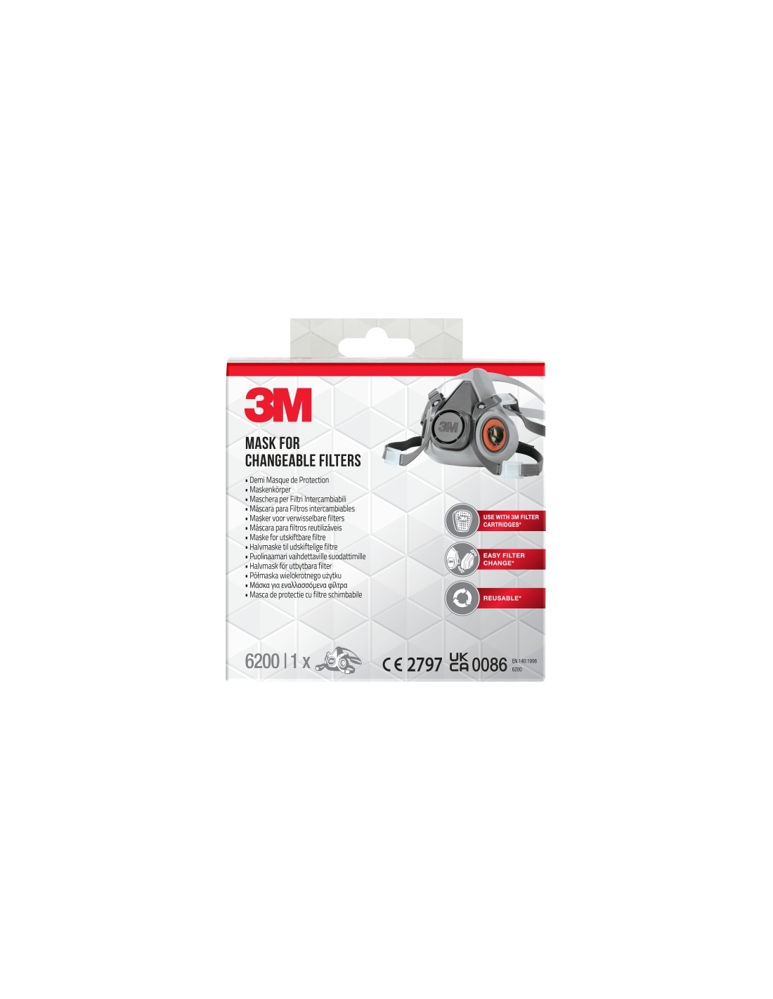 El respirador de media m scara reutilizable 3M para filtros intercambiables 3M 6200PRO es nuestra media m scara ligera y reutilizable, con doble v lvula de inhalaci n y filtros de gran tama o que reducen la resistencia a la respiraci n mientras se realizan tareas profesionales de pintura o lijado. De bajo mantenimiento, cuenta con un sistema de fijado de filtros mediante bayoneta 3M que permite cambiar filtros o cartuchos de manera sencilla y eficiente. Para lograr una mayor transpirabilidad cuando se aplica pintura pulverizada, con brocha o rodillos o al usar lijadoras orbitales y manuales, utiliza el respirador de media m scara reutilizable 3M para filtros intercambiables 6200PRO de 3M Nuestra m scara de filtro reutilizable y ligera es adecuada para tareas comerciales, y se ha dise ado para utilizarse con filtros que podr an ofrecer protecci n contra pinturas a base de disolventes, adhesivos y detergentes de limpieza, y protecci n contra polvos finos de alto nivel y nieblas a base de aceite o agua dependiendo de los filtros 3M que se reutilicen. La resistencia a la respiraci n se reduce con filtros dobles y el sistema de fijado de filtros mediante bayoneta permite conectar filtros de sustituci n de part culas, cartuchos de gases y vapores o cartuchos de combinaci n de manera sencilla y eficiente. El 6200PRO es econ mico y de f cil manejo y mantenimiento, es compatible con protecciones oculares y auditivas de 3M y cumple con las normas europeas. Caracter sticas: -Respirador reutilizable para aplicaci n de pintura pulverizada, con brocha y rodillo, as como para lijado manual y mediante lijadora orbital -El sistema de conexi n de bayoneta 3M que permite una amplia gama de filtros dobles para proteger contra gases org nicos y vapores como pinturas a base de disolventes, adhesivos, detergentes de limpieza, polvos finos de alto nivel y nieblas a base de aceite o agua, seg ºn los cartuchos y filtros instalados en l -Reutilizable con cartuchos sustituibles de filtros de part culas 3M , gases y vapores 3M , o con cartuchos de combinaci n 3M -Mayor transpirabilidad y menor resistencia proporcionada mediante filtros dobles -Econ micas, con poca necesidad de mantenimiento, f ciles de manejar y ligeras -F cil cambio de filtros con sistema de fijado mediante bayoneta 3M para una amplia variedad de filtros -Probado y aprobado conforme a las normas europeas: marca -CE Mark (EN 140:1998) -El usuario debe ser entrenado en el correcto uso del equipo y leer y entender las instrucciones de uso. Un uso inadecuado puede derivar en enfermedad grave o discapacidad permanente -Contenido del paquete: 1 respirador -Compatible con protecciones oculares y auditivas de 3M Cumple con la norma europea EN 140:1998 (CE 2797, UKCA 0086) -Contenido del paquete: 1 Especificaciones: -Color: Gris -Tipo de producto: Media M scara -Material: Elast mero termopl stico (TPE)