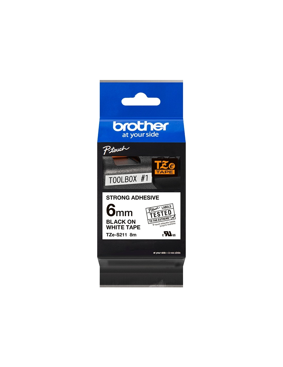 Brother TZeS211 Cinta Laminada Super Adhesiva Original de Etiquetas - Texto negro sobre fondo blanco - Ancho 6mm x 8 metros