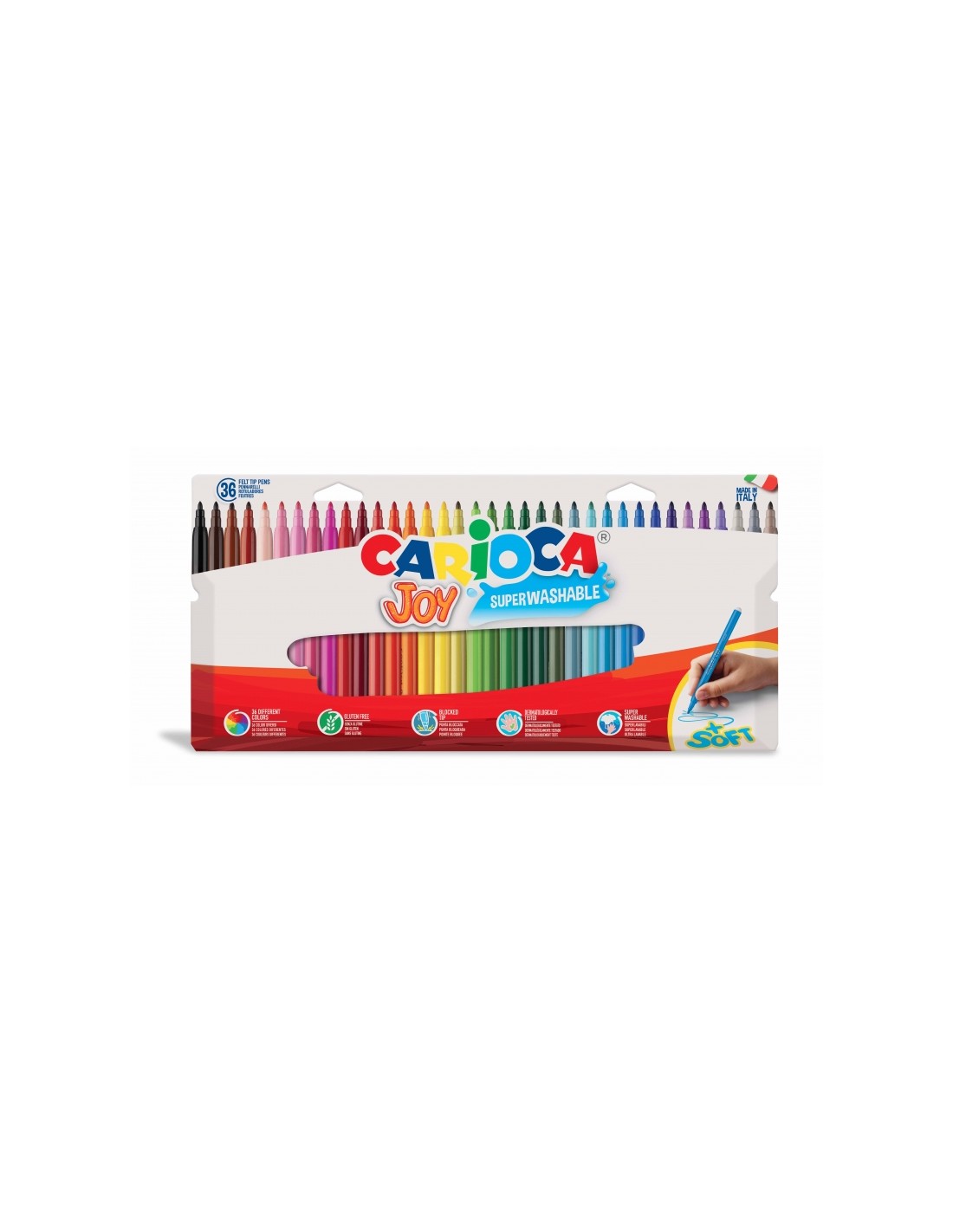 Carioca Joy Pack de 36 Rotuladores - Tinta Superlavable - Punta Fina 2.8mm - Punta Bloqueada - Tapa Ventilada Características: -Pack de 36 rotuladores JOY -Tinta superlavable -Punta fina 2,8 mm, bloqueada y con tapa ventilada -Made in Italy